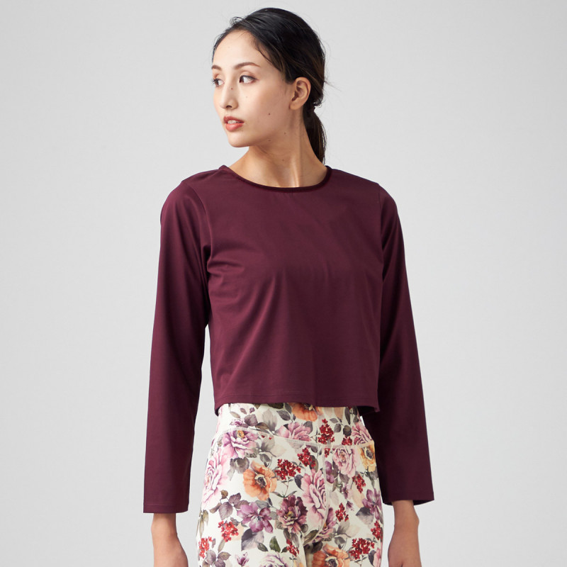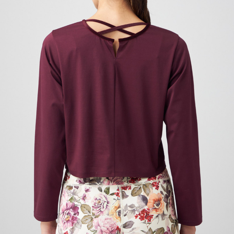 衿まわりにベロアアクセント、クロップド丈が可愛いボックスTシャツ