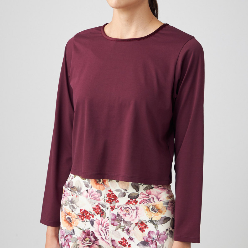 人気のクロップド丈ボックスTシャツが今シーズンはベロアコンビに。