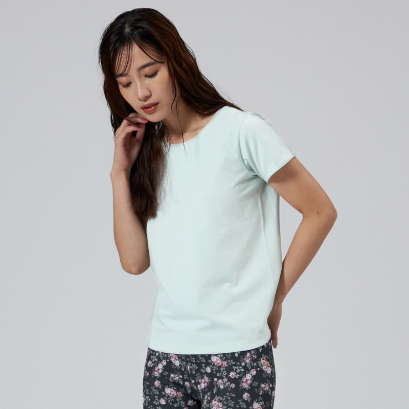 Tシャツにシアー素材でアクセントを加えて胸キュンポイントをプラス。