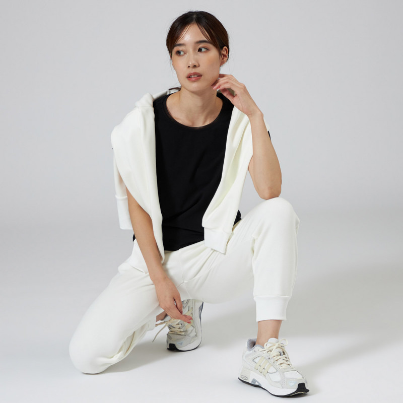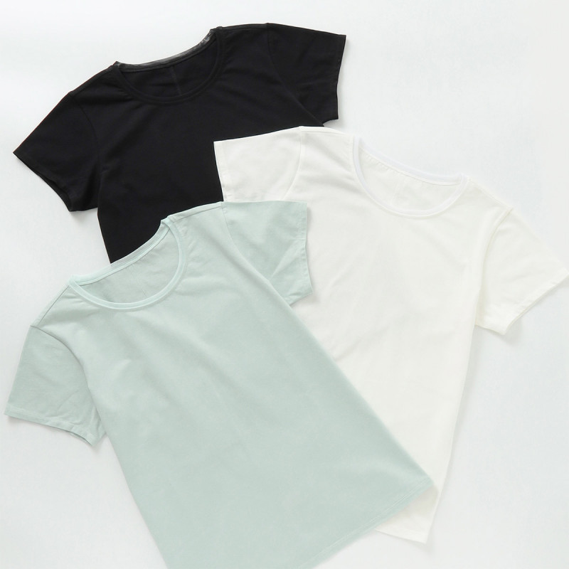 脇線をなくし筒型にすることでナチュラルストレッチの素材感を生かした着やすい型に。