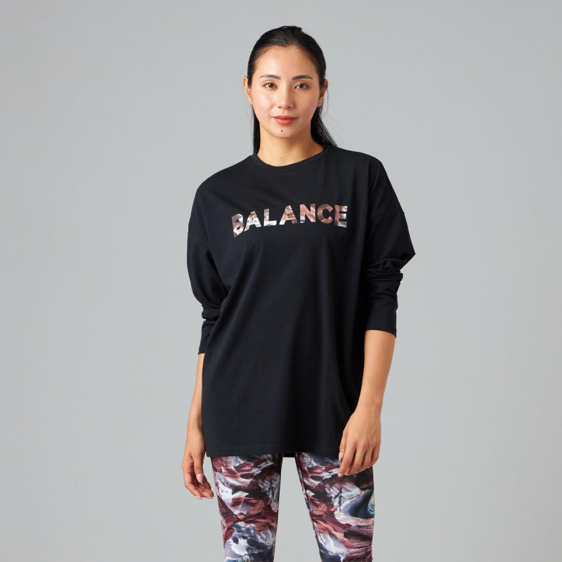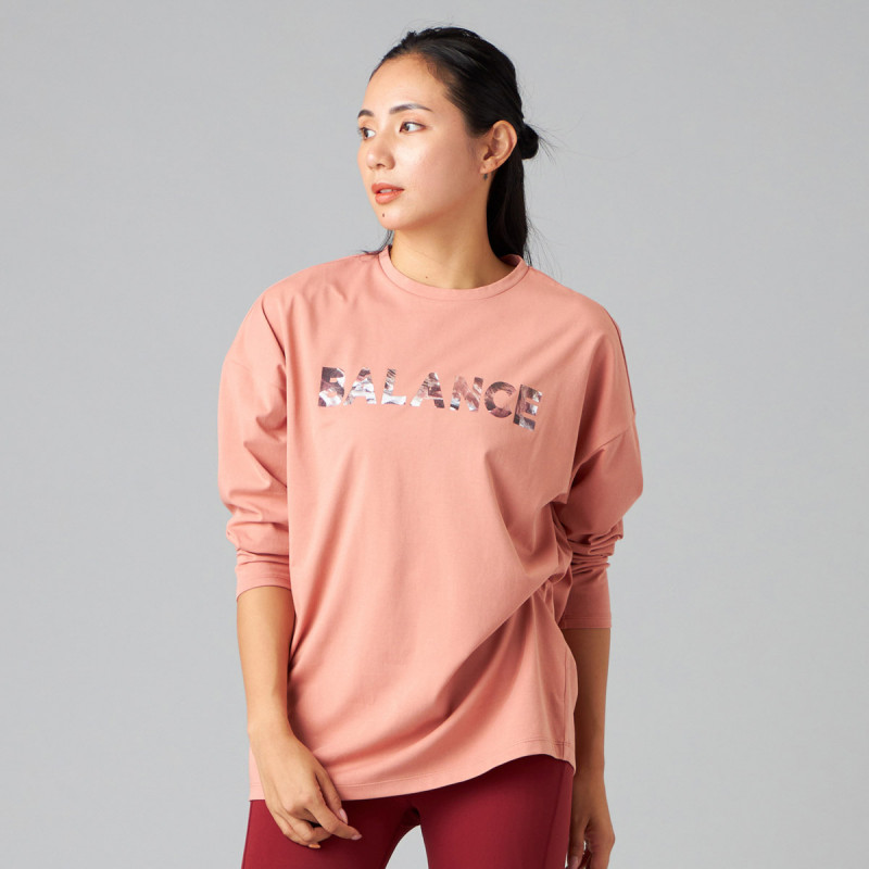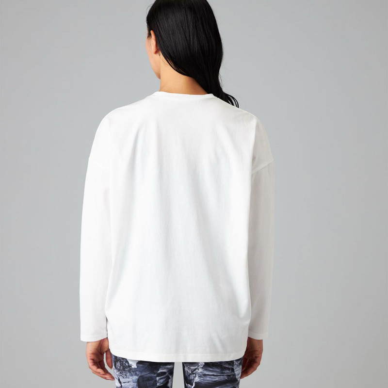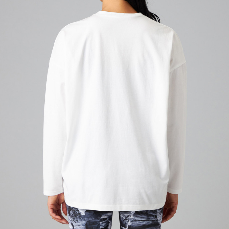 オーバーサイズ長袖Tシャツで、ゆったりとしたスタイルを楽しめる。