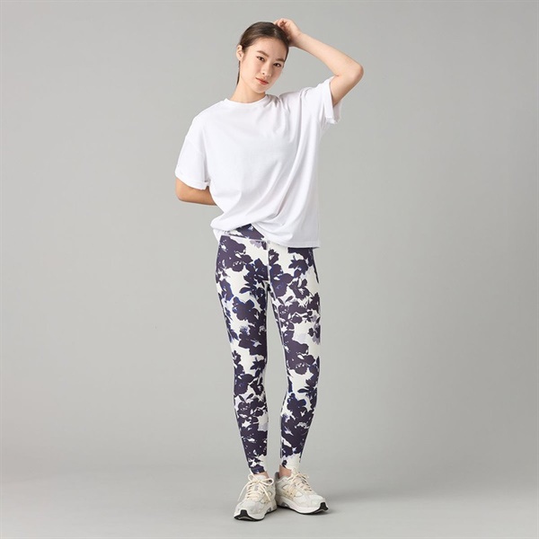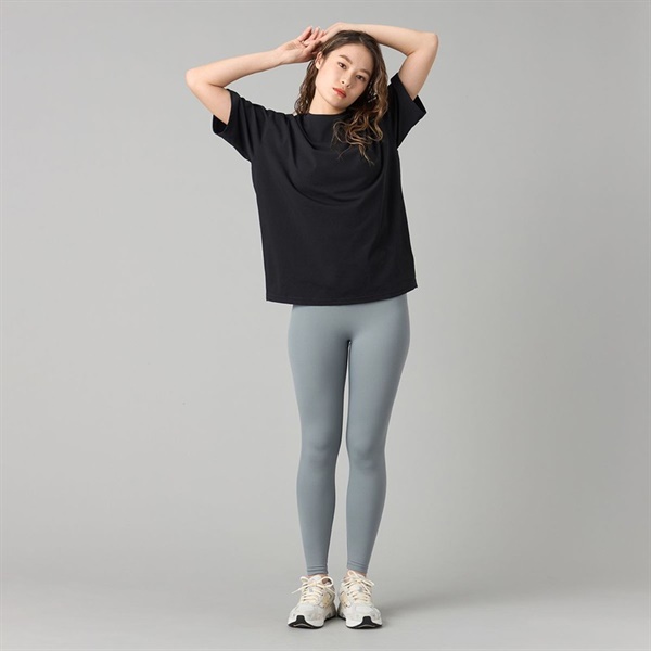 様々なアイテムと合わせやすく、レギンス以外にもデニムやショートパンツと合わせるだけで、こなれた印象を演出します。