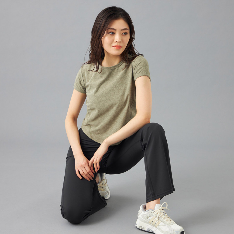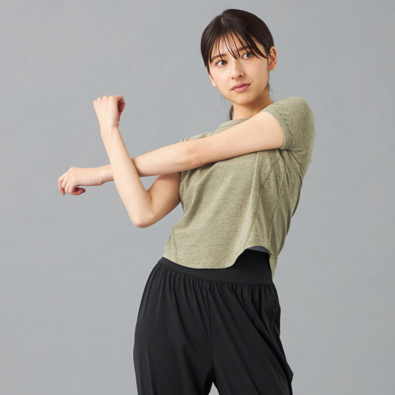カジュアルな日常使いはもちろんトレーニングやフィットネスなどのアクティブなシーンでも活躍する、動きやすさとおしゃれを両立したマルチなTシャツ。