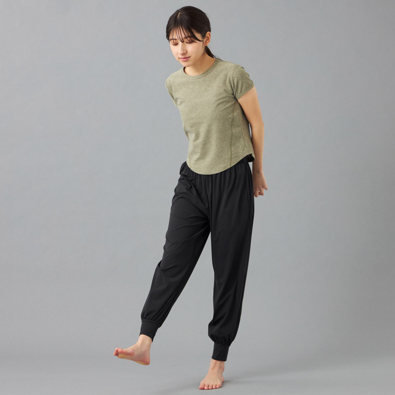 なめらかで伸びの良いストレッチ素材を使用し、動きやすさは抜群。
