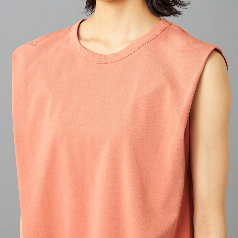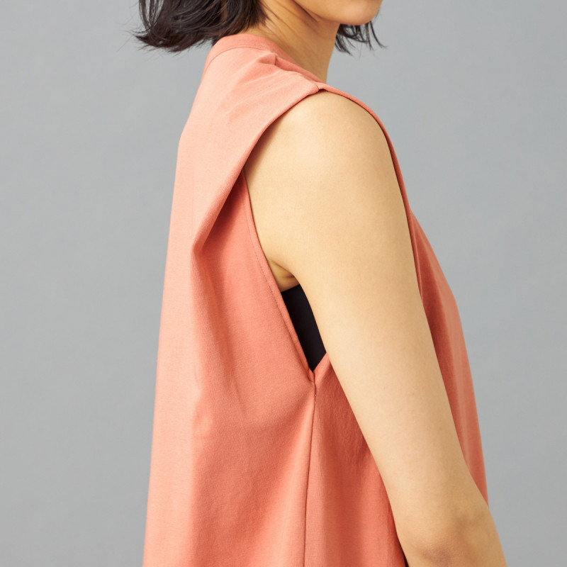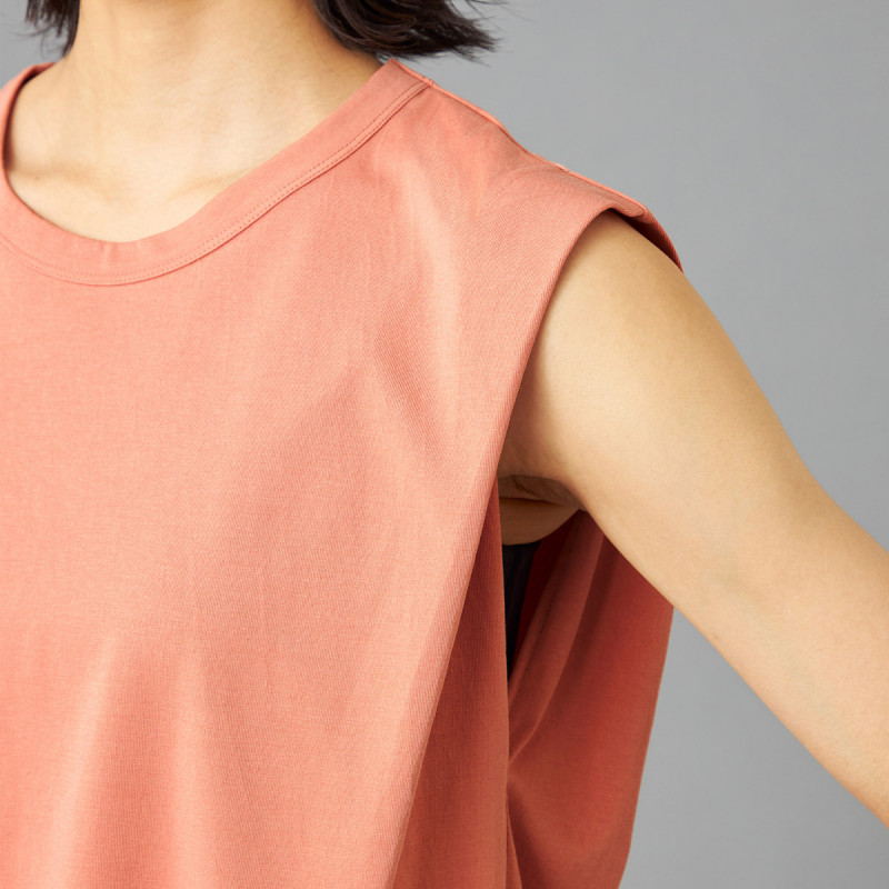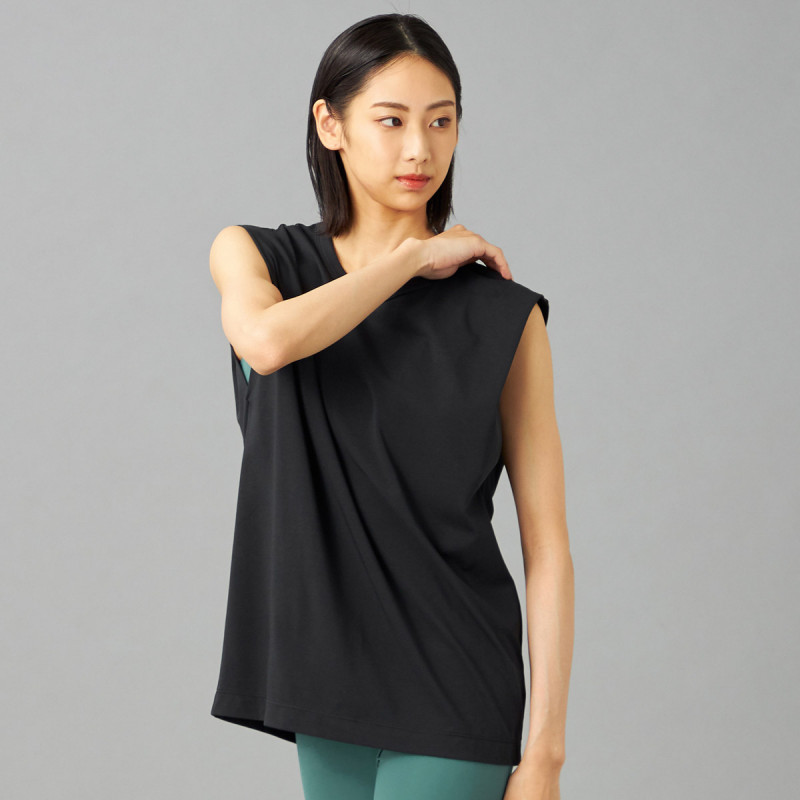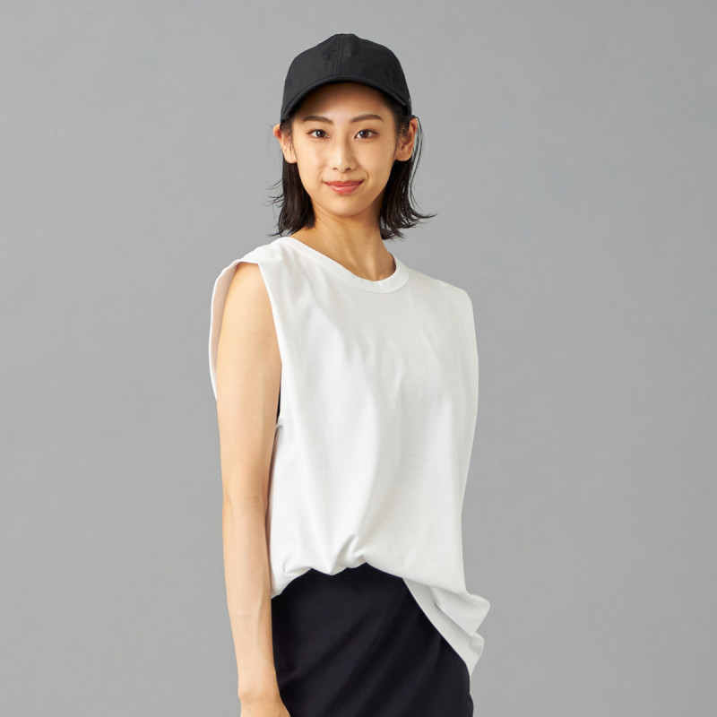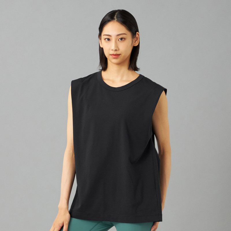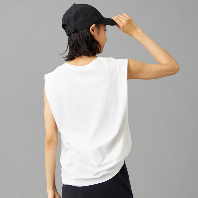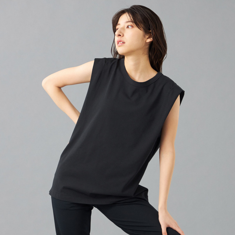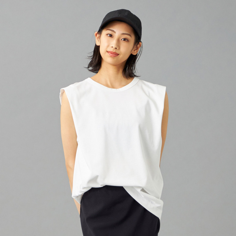 オーバーサイズシルエットのタンクトップは肩から二の腕にかけてのラインを美しく見せるこだわりの1枚。