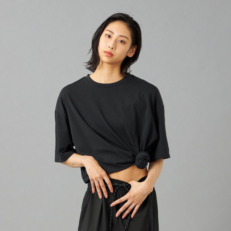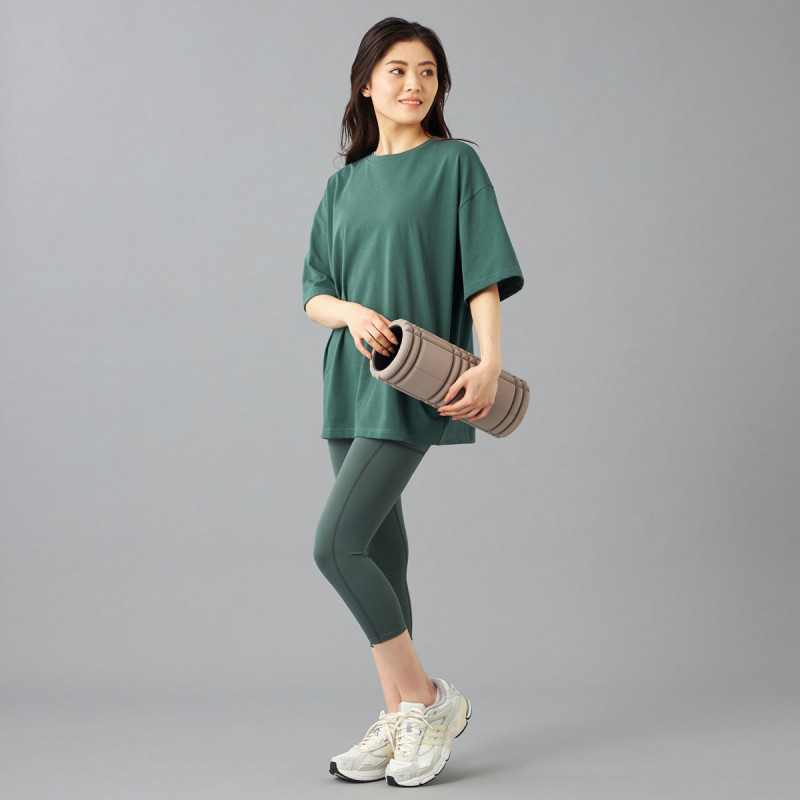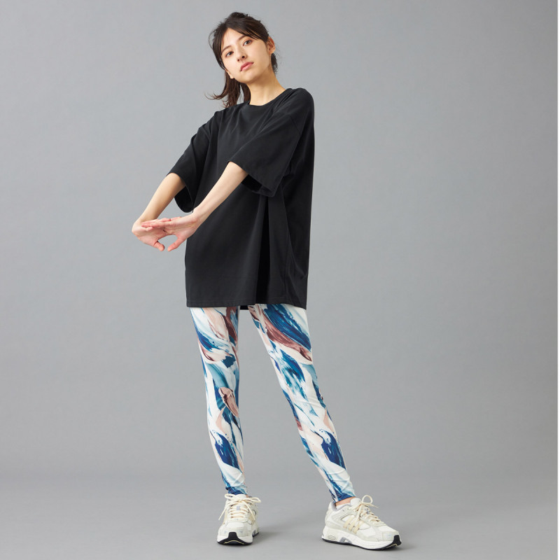 様々なアイテムと合わせやすくレギンス以外にもデニムやショートパンツと合わせるだけでこなれた印象を演出。