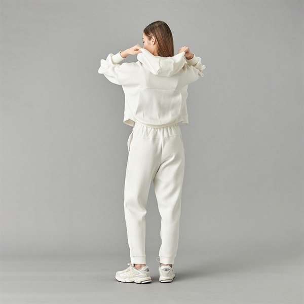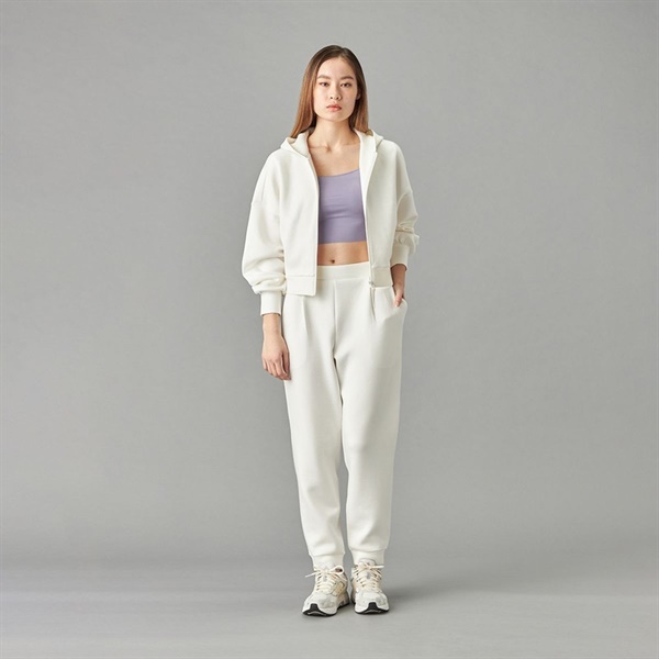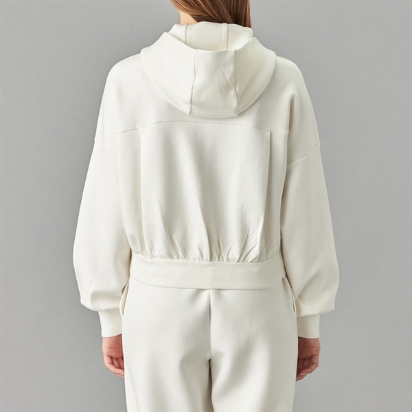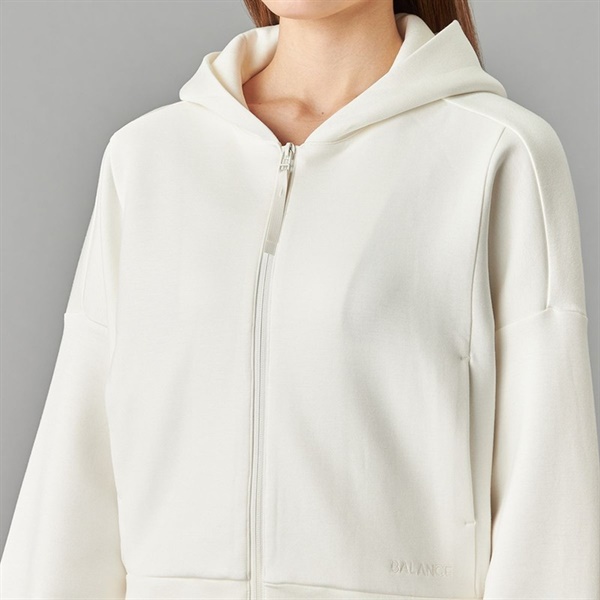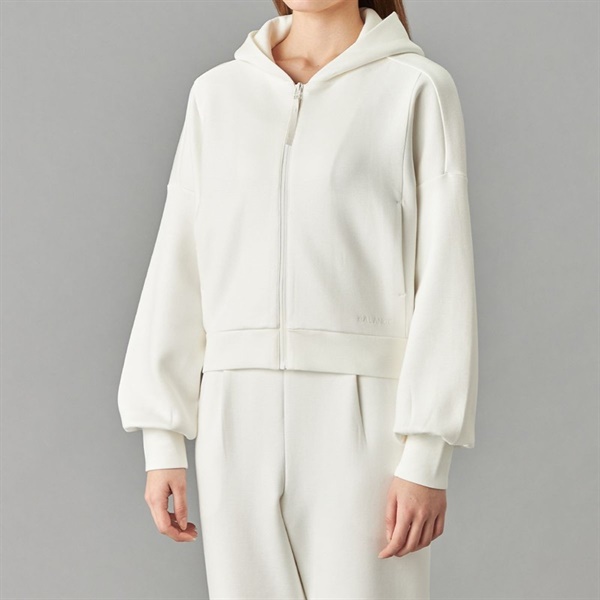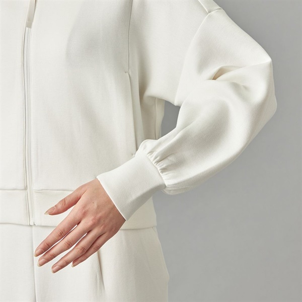柔らかく肌触りの良い風合いと、適度なハリ感とドレープ性が特徴のダンボール素材を使用したジップアップフーディージャケット。