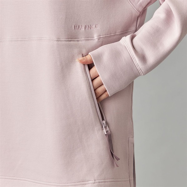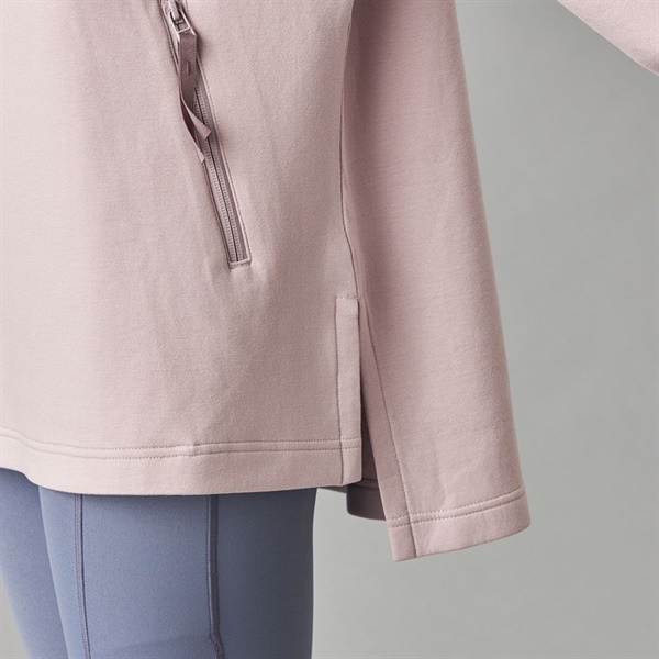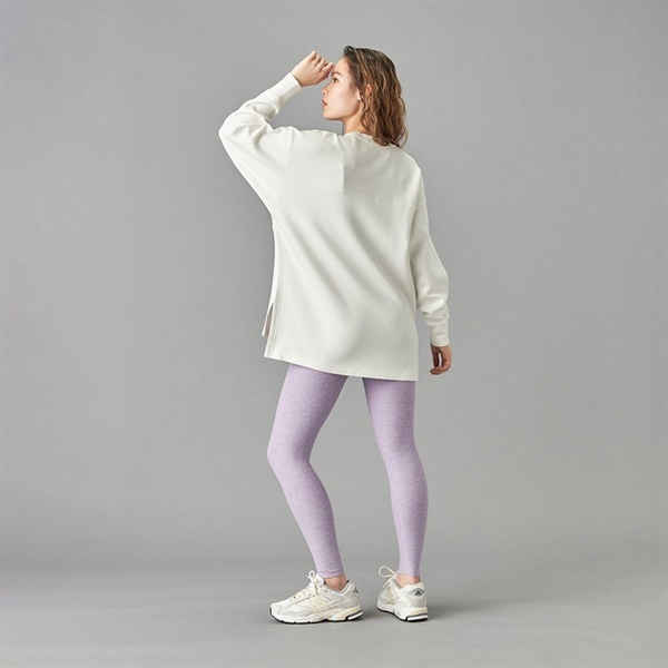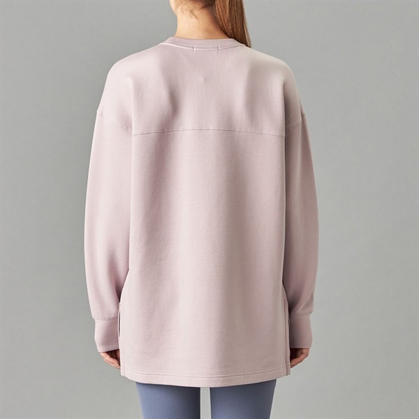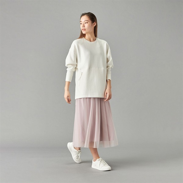 全体的にゆったりめのシルエットで脇にスリットを入れ、後ろ丈を長めに設定してお尻が隠れるようにしています。