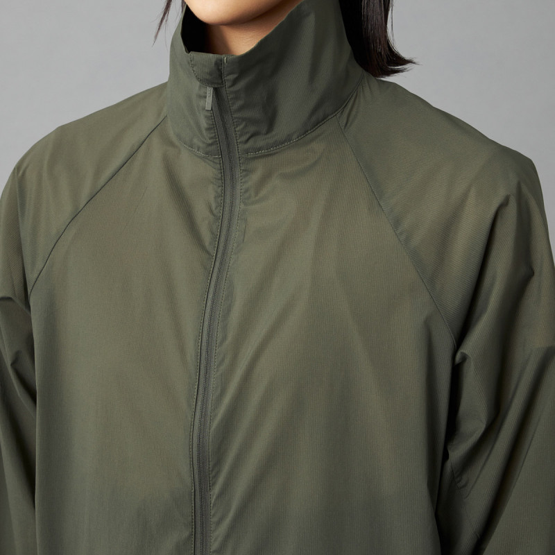 軽量な素材なので動きの邪魔をせず、撥水機能と透湿性でアクティブウェアにも最適。