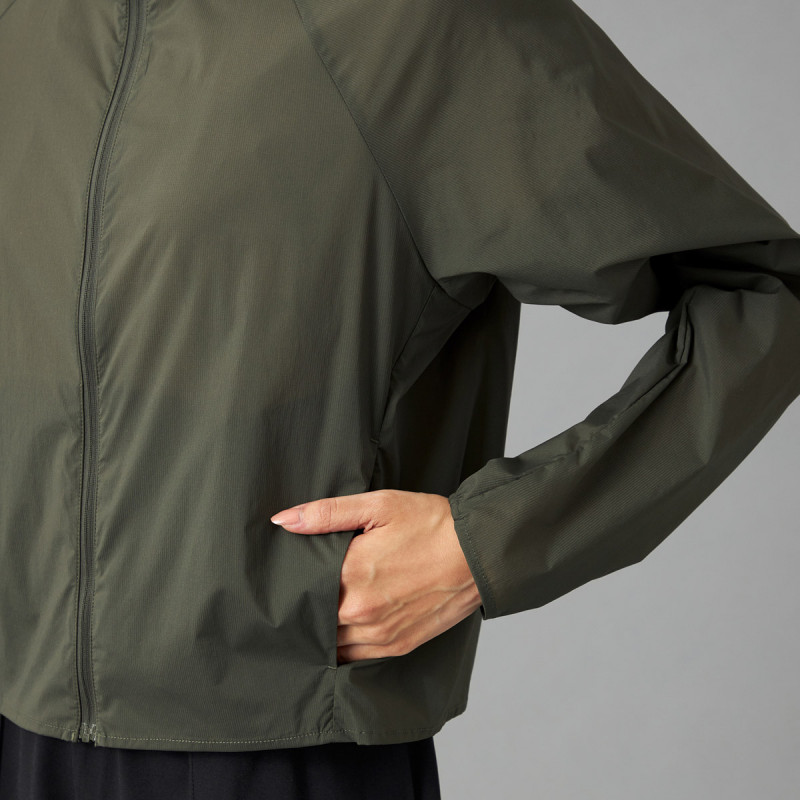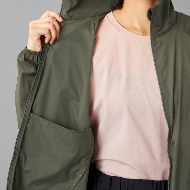ジャケットはポケットに収納でき、収納後は小さなパッケージにまとまり、バッグに簡単に収納可能。