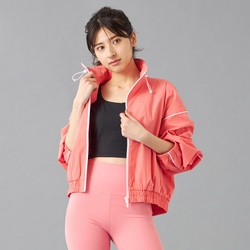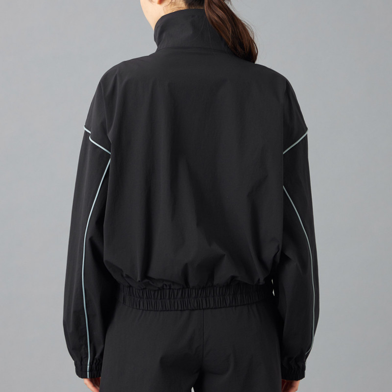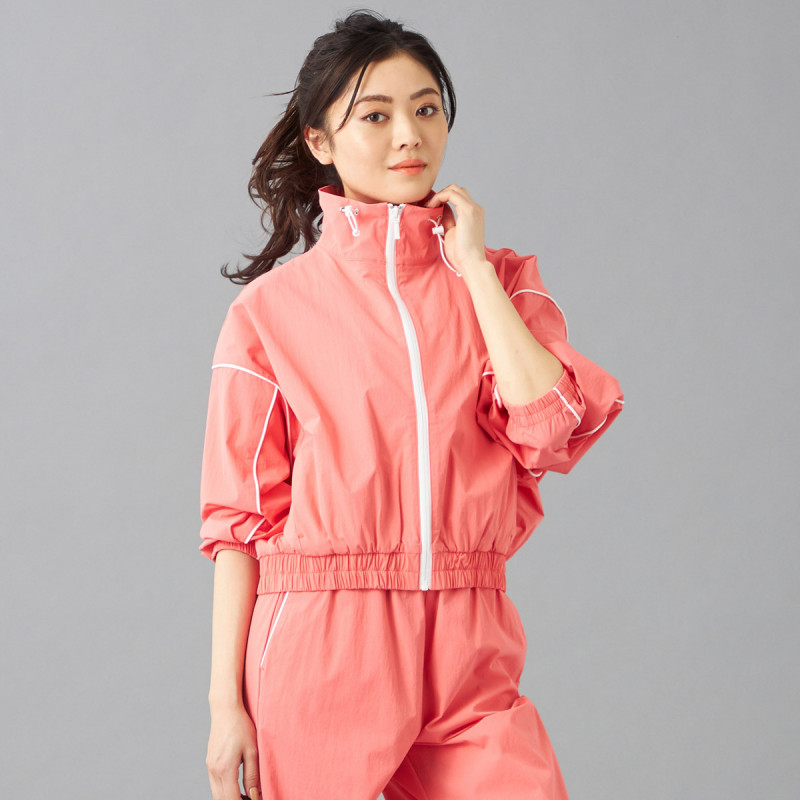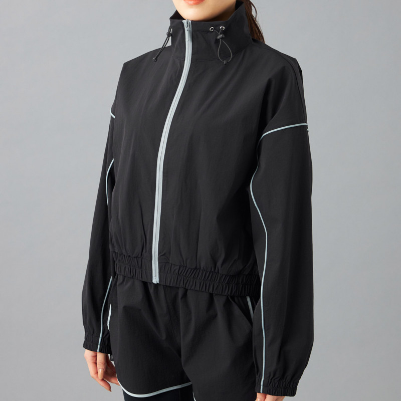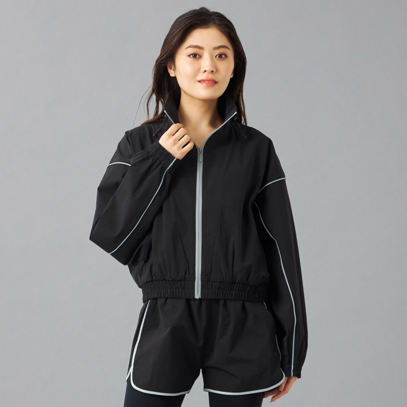 タフタ素材にパイピングテープがアクセントのトラックジャケット。