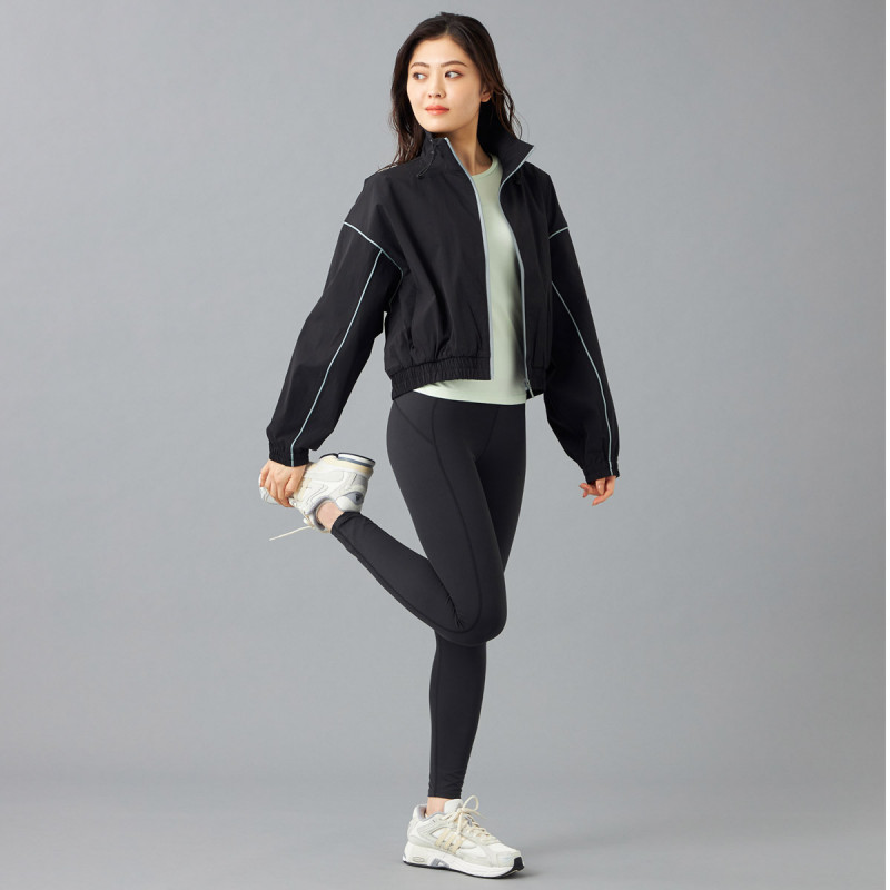 ジャケットの縁やジップラインに施されたカラーアクセントがさりげなくも印象的な配色で目を引き、全体に立体感とメリハリをプラス。
