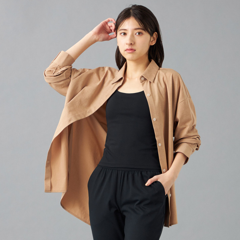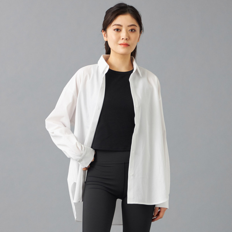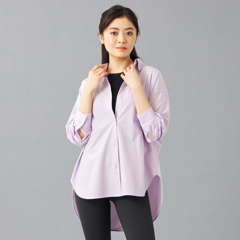 スポーツ素材を用いてデイリーにも活用できオーバーシャツにアレンジ。