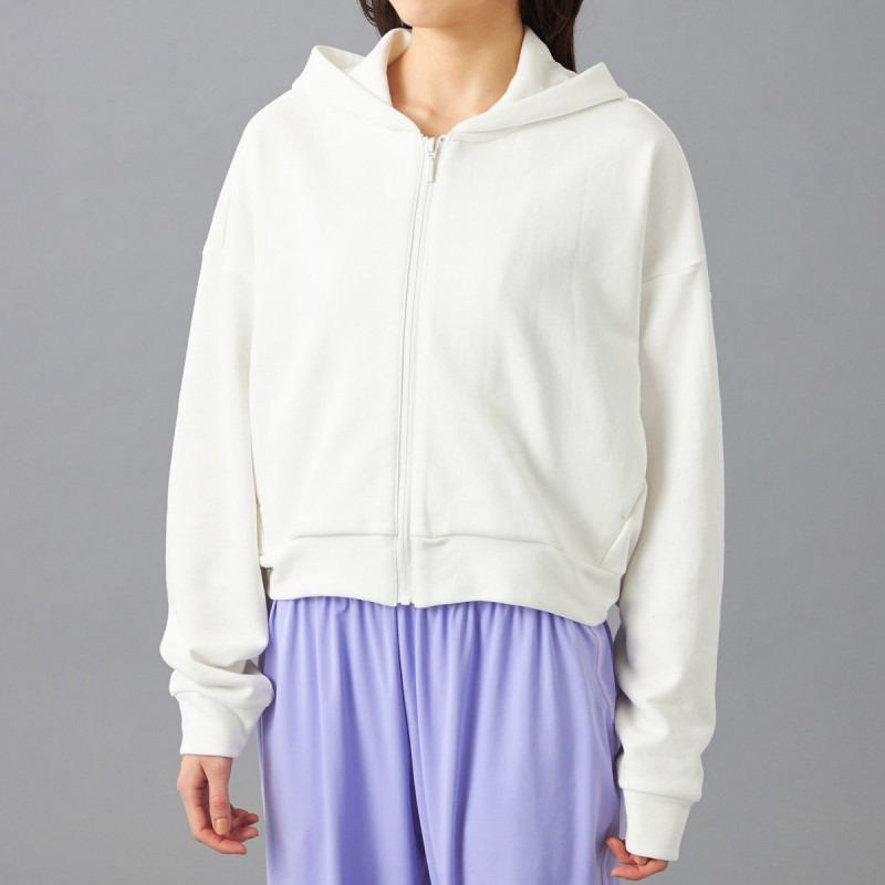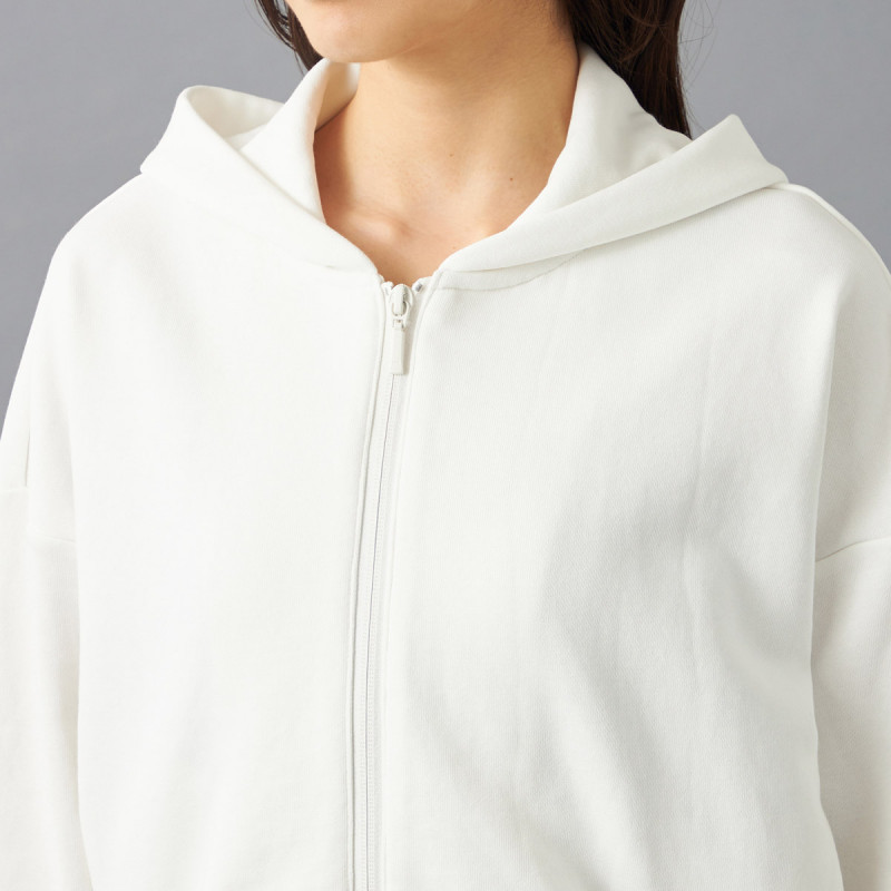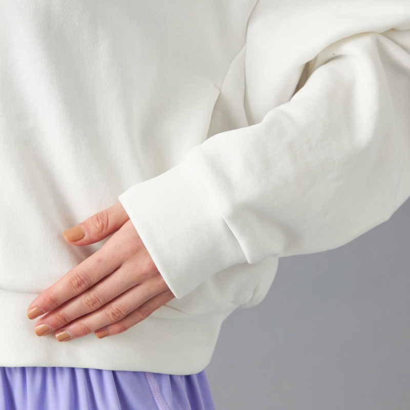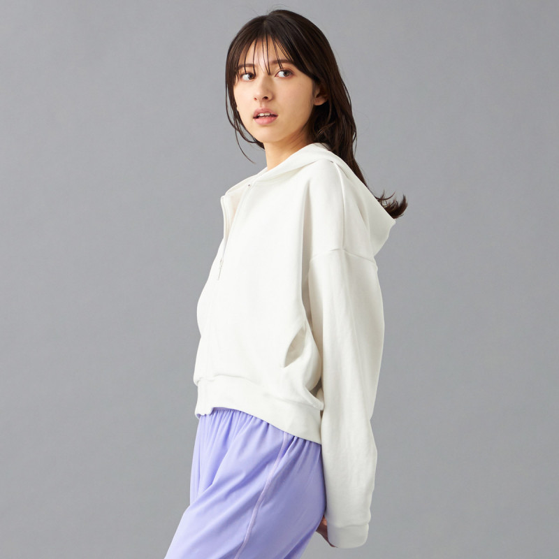 ポリエステルを混紡することで一般的な綿100%の裏毛よりも軽くて乾きやすいので取り扱いがしやすく、程よい厚みで重ね着もしやすく日常やスポーツ時など幅広いシーンで利用可能。