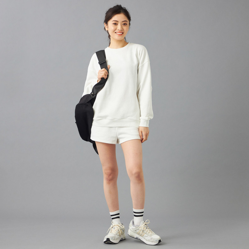ポリエステルを混紡することで一般的な綿100%の裏毛よりも軽くて乾きやすいので取り扱いがしやすく、程よい厚みで重ね着もしやすく日常やスポーツ時など幅広いシーンで利用可能。