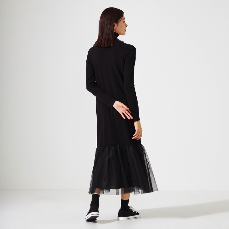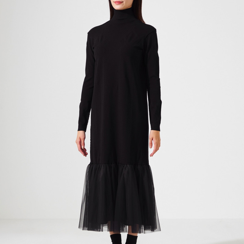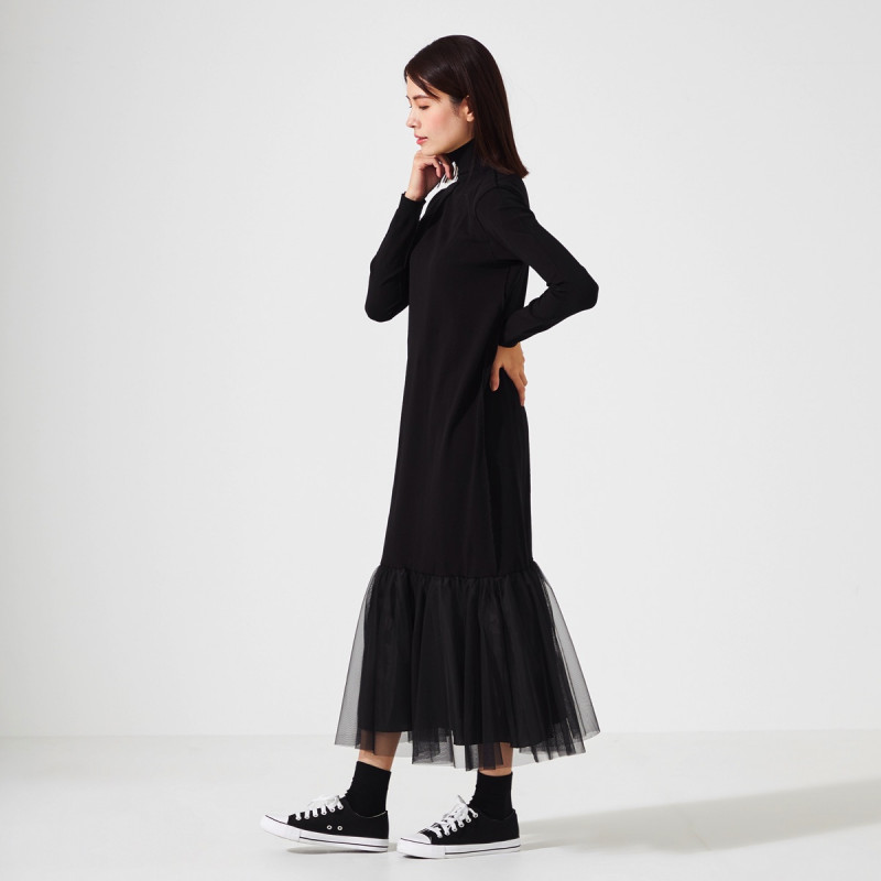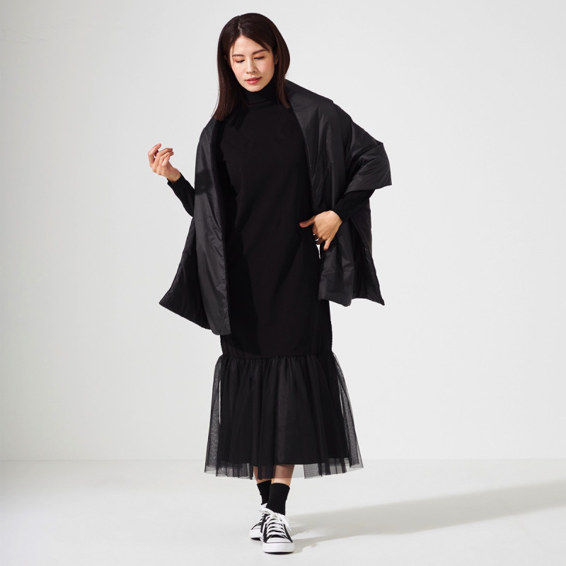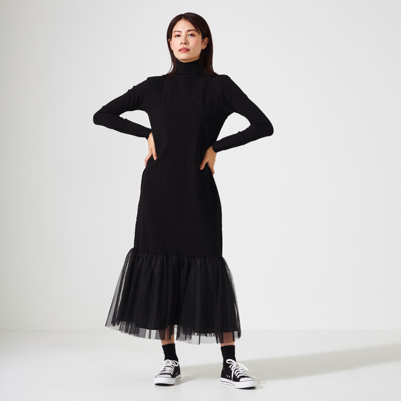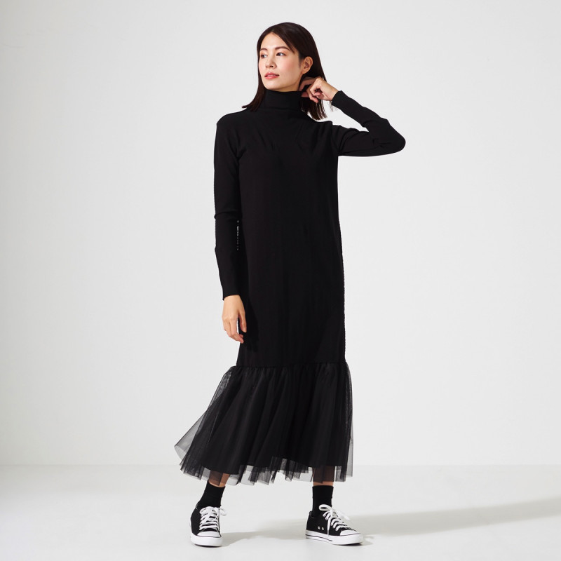 ノーソーイングニットをベースに人気のチュールスカートと合わせたワンピース。