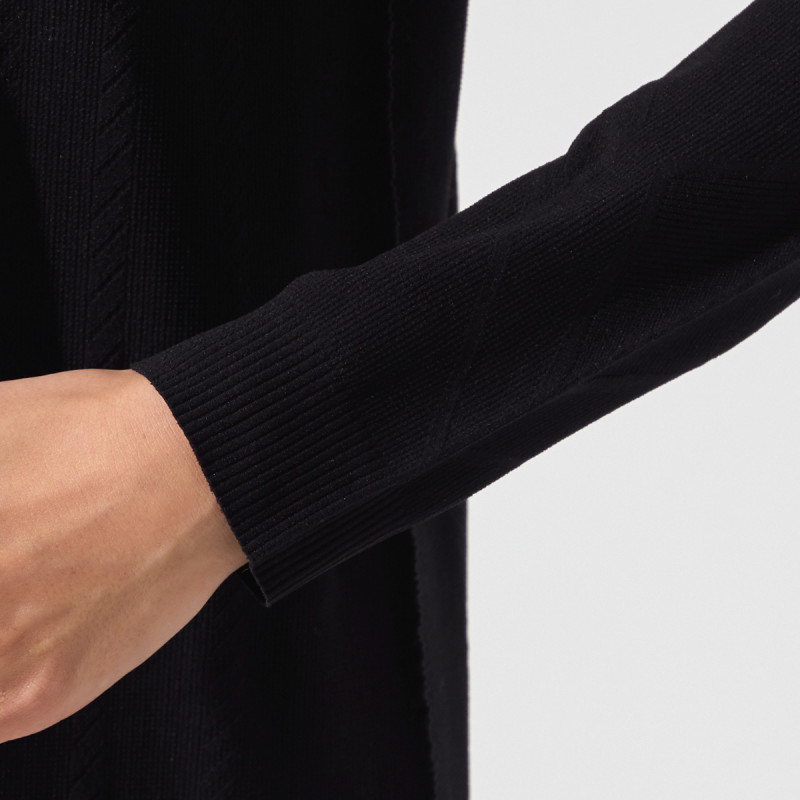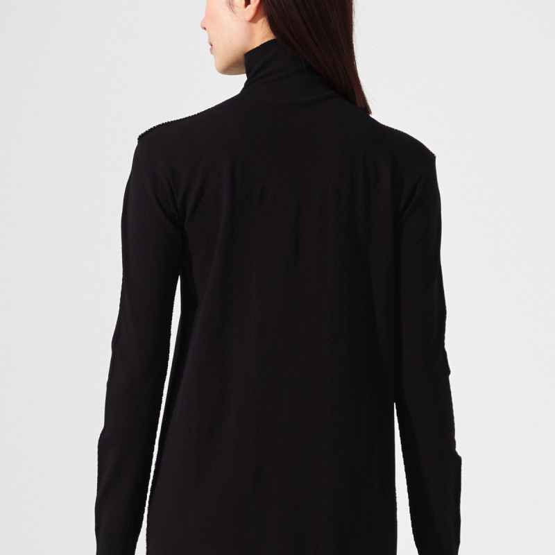 少し大きめのサイズ感に設計し、編地は透け感を抑えているので体のラインとインナーを気にすることなく着られる。