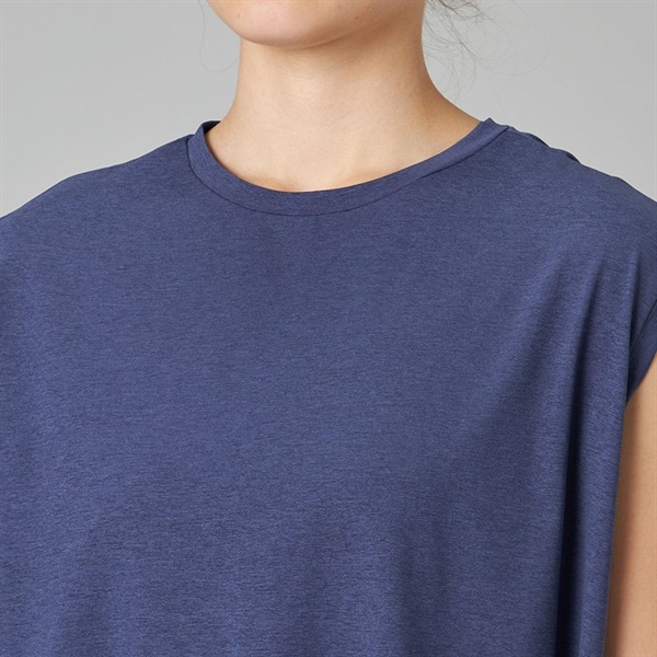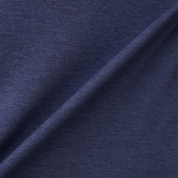 糸の特性から生地のキックバックが強いので、伸縮性の良さと型崩れのしにくさをもった生地です。Thick and Thin(シック:太い部分とシン:細い部分のある特殊な形状をした糸)によりナチュラルな見え方に仕上がっています。吸水速乾性に大変優れており、紫外線も97%以上カットする機能を持っています。