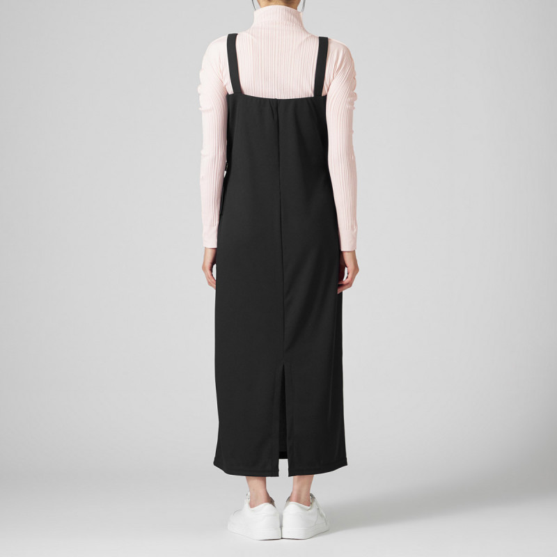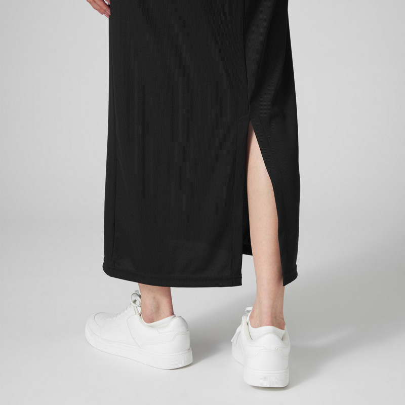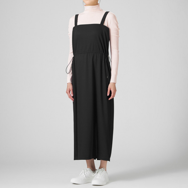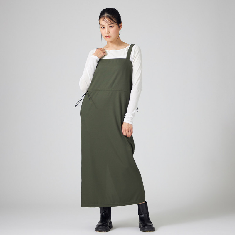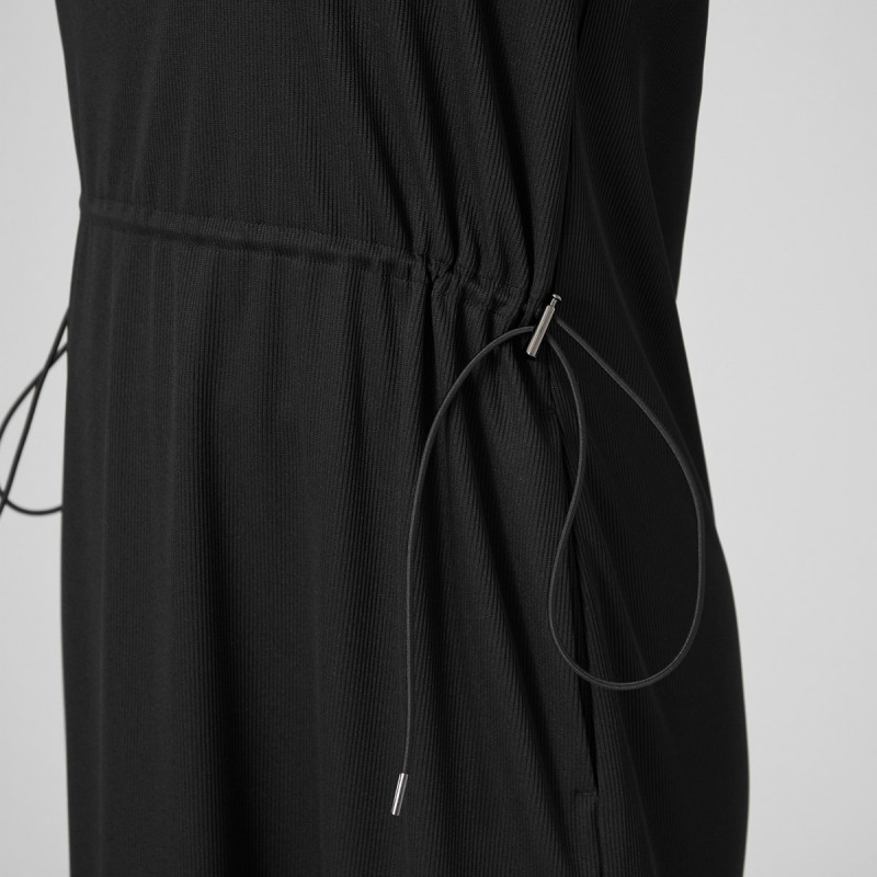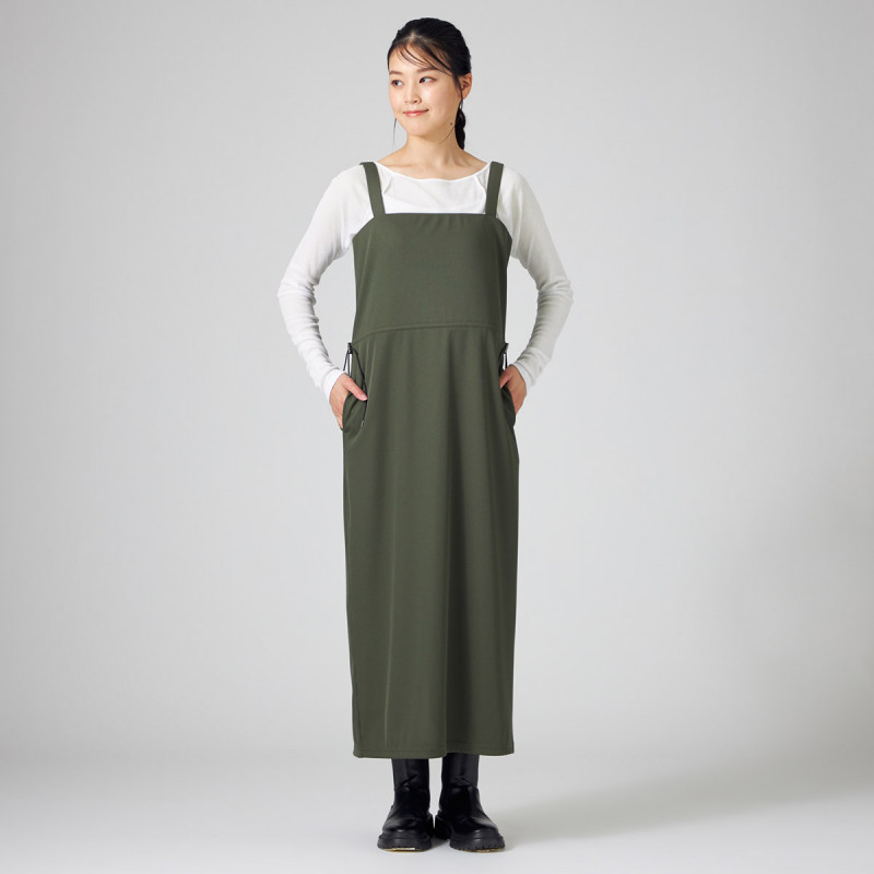 お洗濯での取り扱いがしやすいポリエステル素材のリブワンピース。