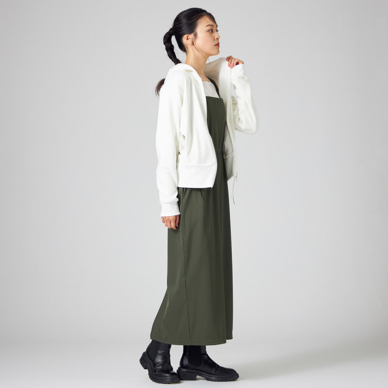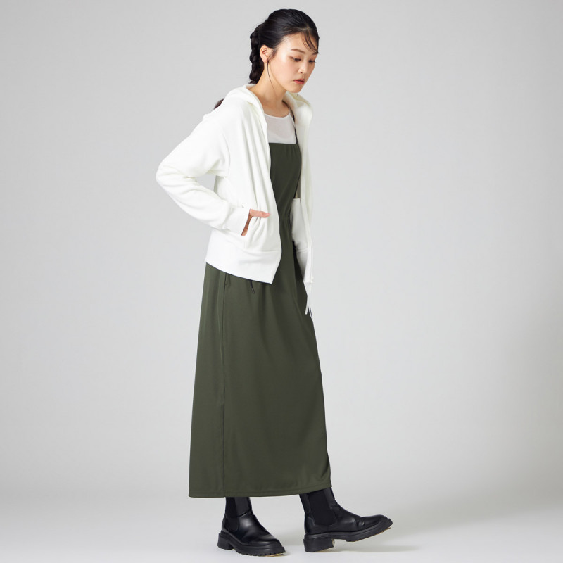 ストンとしたシルエットで脱ぎ着がしやすく、レッスンウエアの上からでも簡単に着られる楽ちんアイテム。