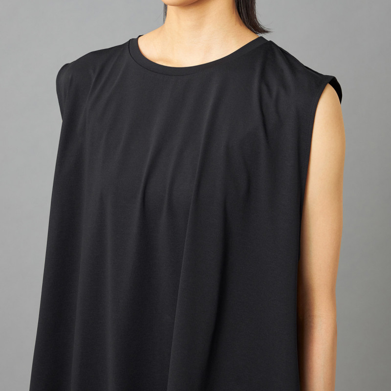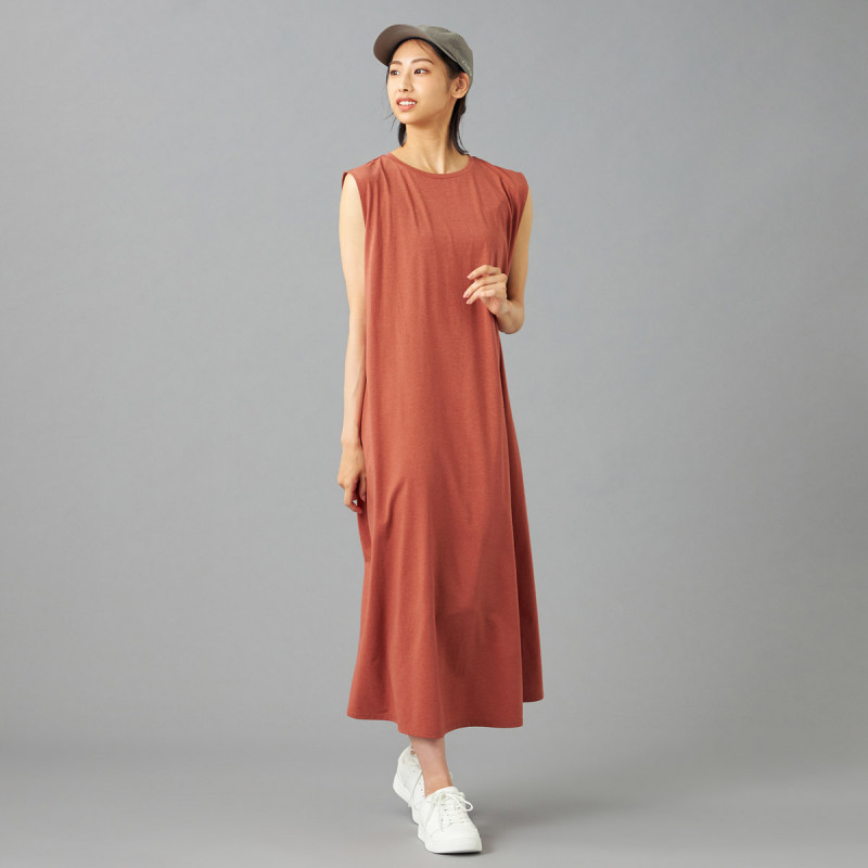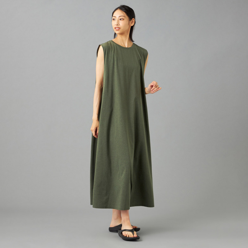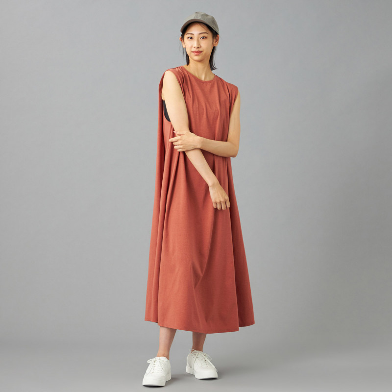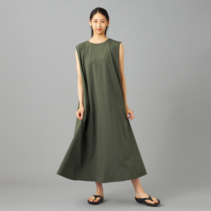 大きくあいたアームホールとたっぷりとしたフレアで風を通しやすく、盛夏にぴったりなアイテム。