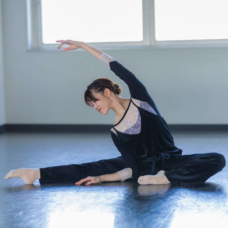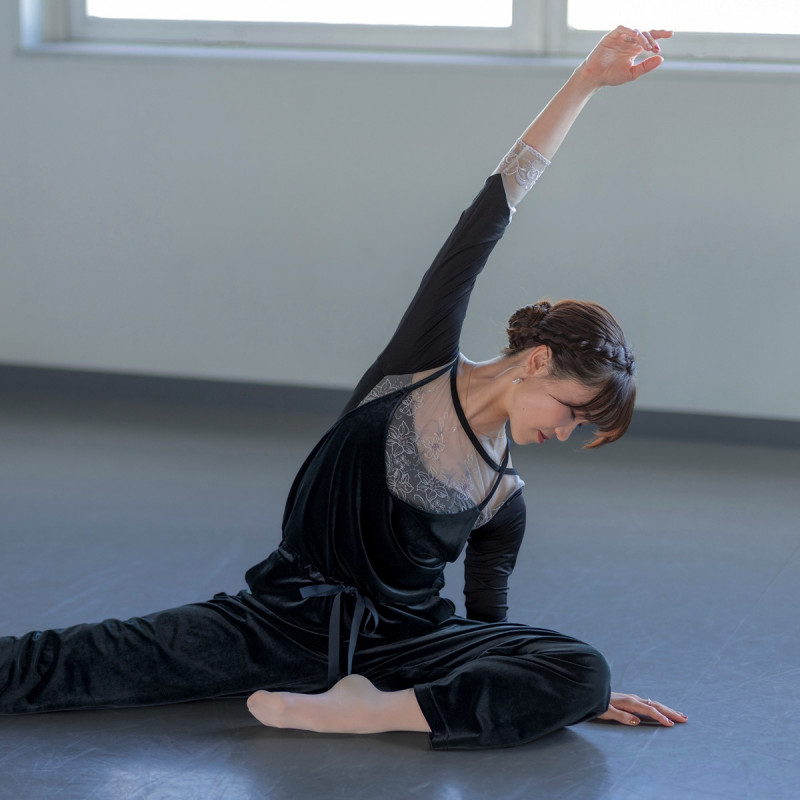 ウエストを絞ってフィットさせたり結んだりする事が可能で、レッスンで使用して着替え要らずで行き帰り。タウンウェアとしても活躍してくれる、汎用性の高いアイテム。