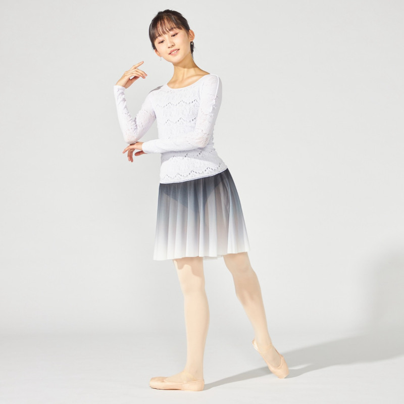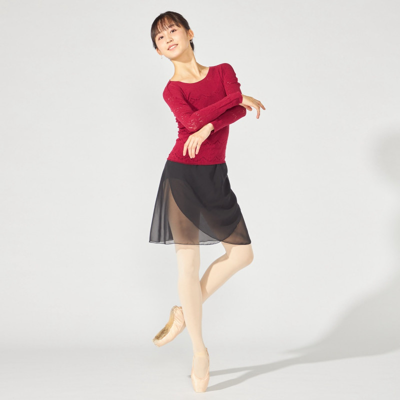 レオタードやブラトップの上に着用してパンツ、レギンス、スカートなどお手持ちのボトムスとあわせて。