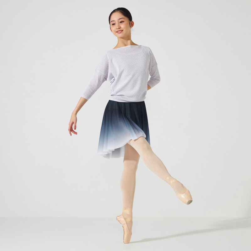 レオタードやブラトップの上に着用してパンツ、レギンス、スカートなどお手持ちのボトムスとあわせて。