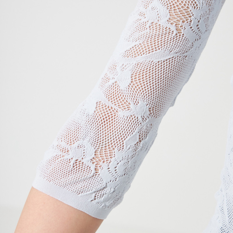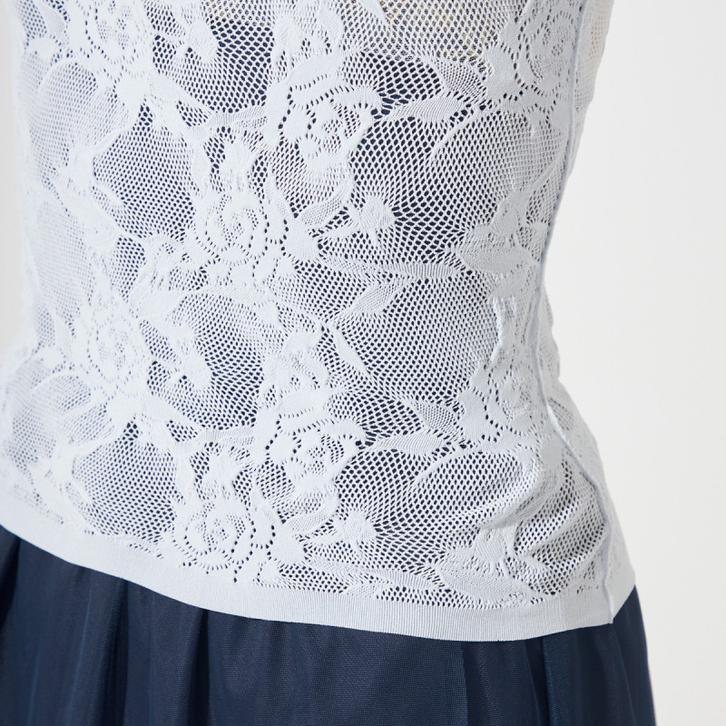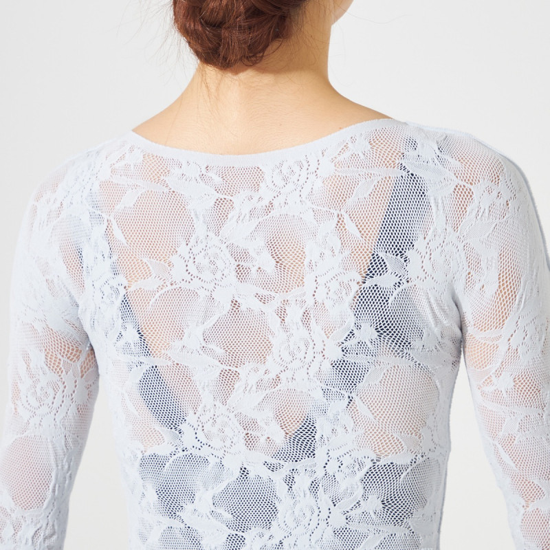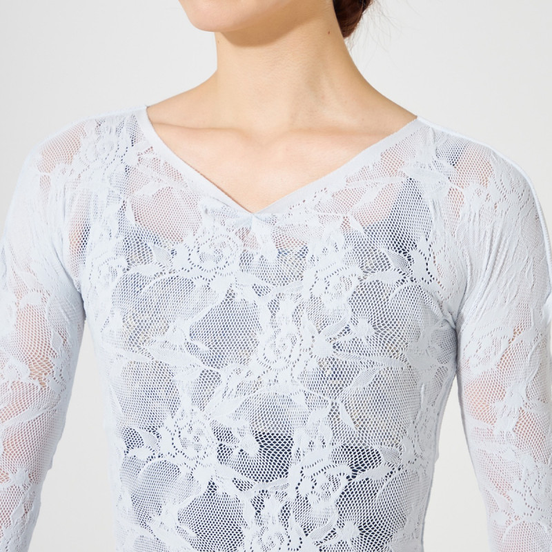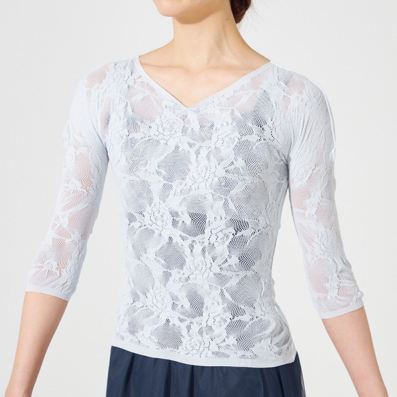 華やかな薔薇モチーフ柄のレースは、全体的に透け感があり涼しい着心地感で快適にレッスンができる。