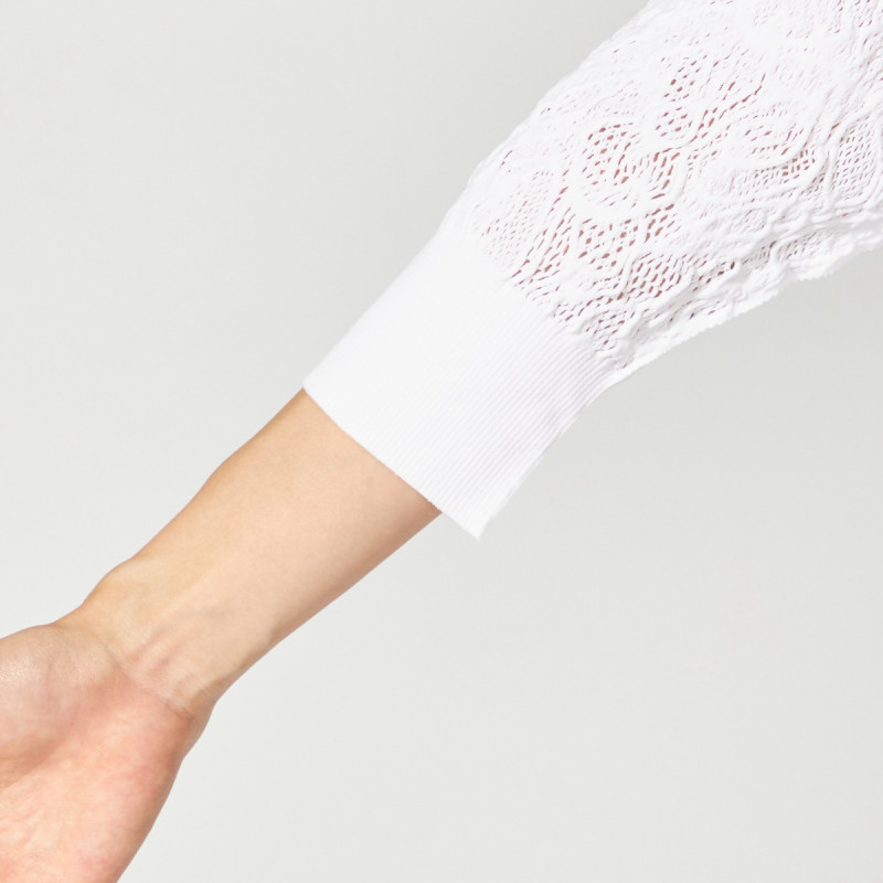 上品な透け感のレース柄は暑さを感じる季節に快適に着用可能。