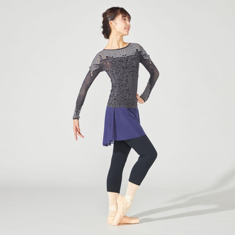レオタードやブラトップの上に着用してパンツ、レギンス、スカートなどお手持ちのボトムスとあわせて。