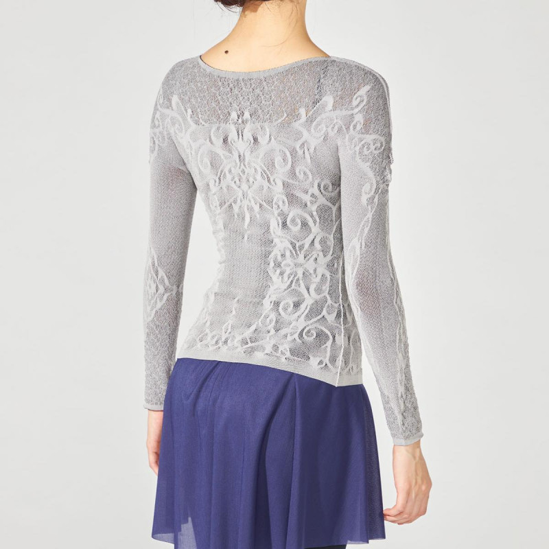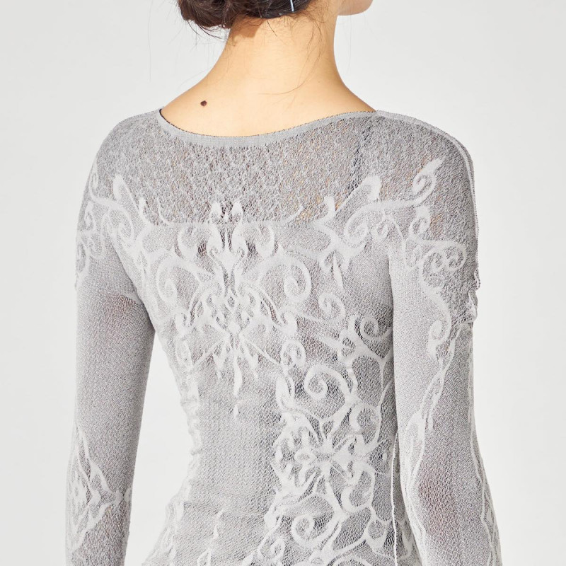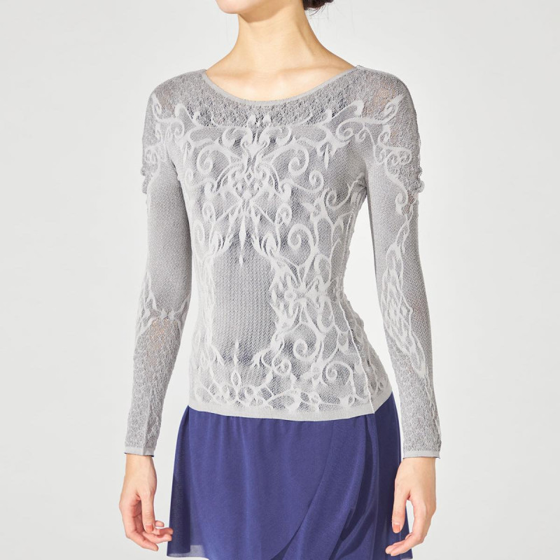 バレエの舞台をイメージした豪華な柄は身体のラインをシャープに見せる。