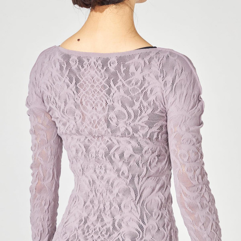 ノーソーイングニットならではのレーシーな編地もデザインポイント。