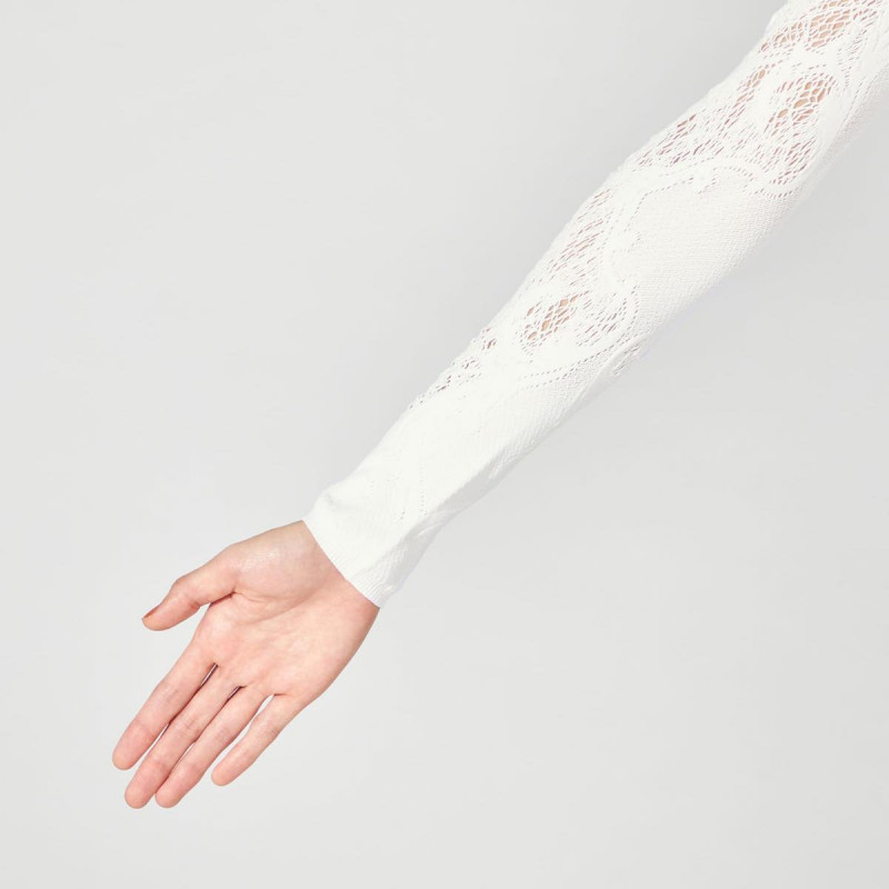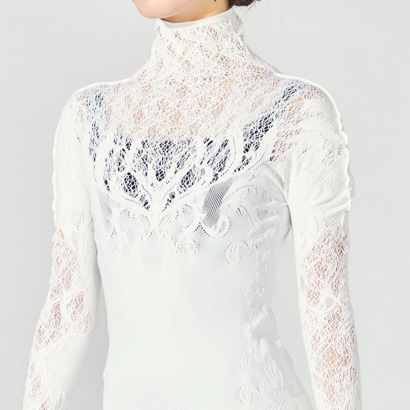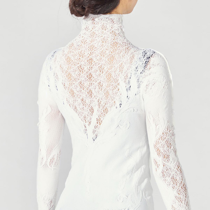 編地を切り替えてアクセントにすることで、デコルテと背中を美しく見せる。