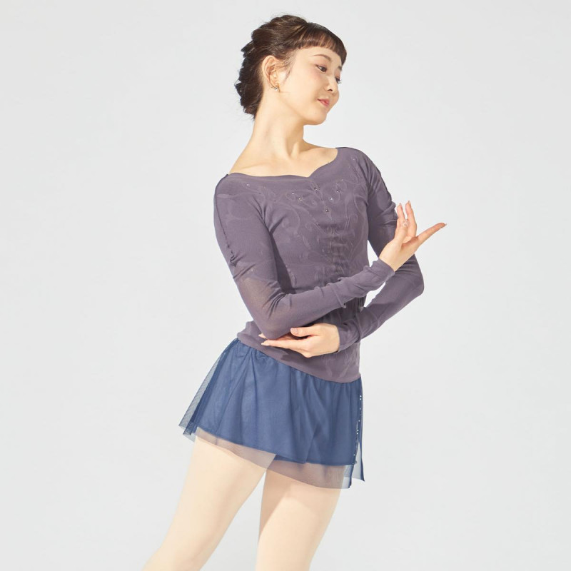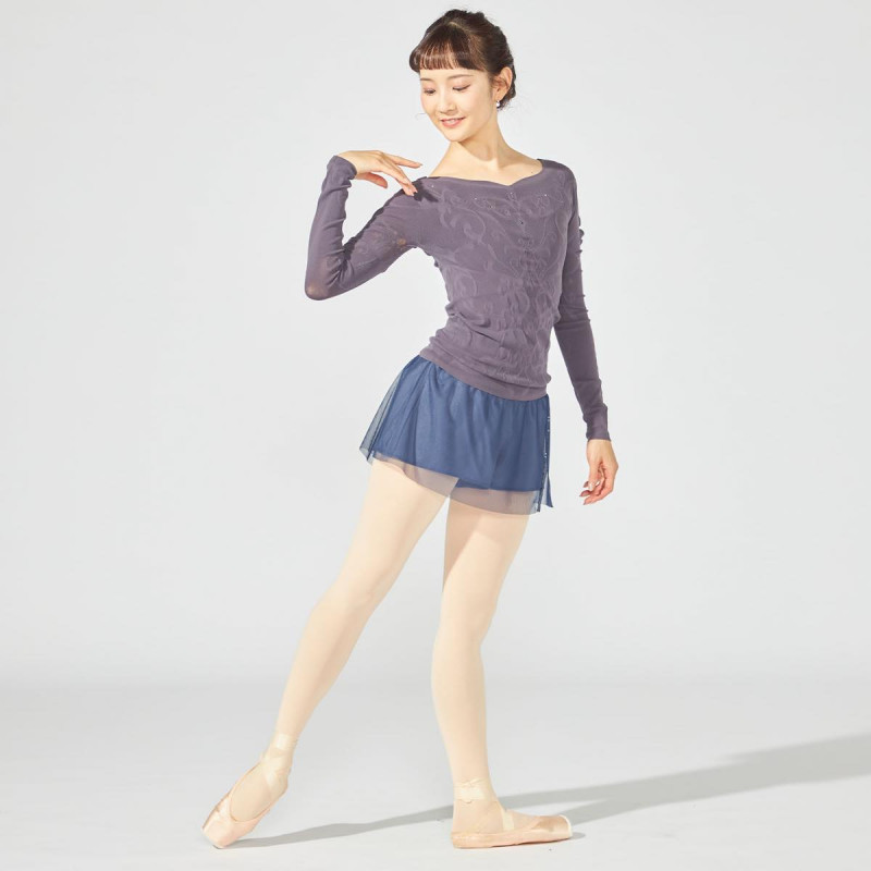レオタードやブラトップの上に着用してパンツ、レギンス、スカートなどお手持ちのボトムスとあわせて。