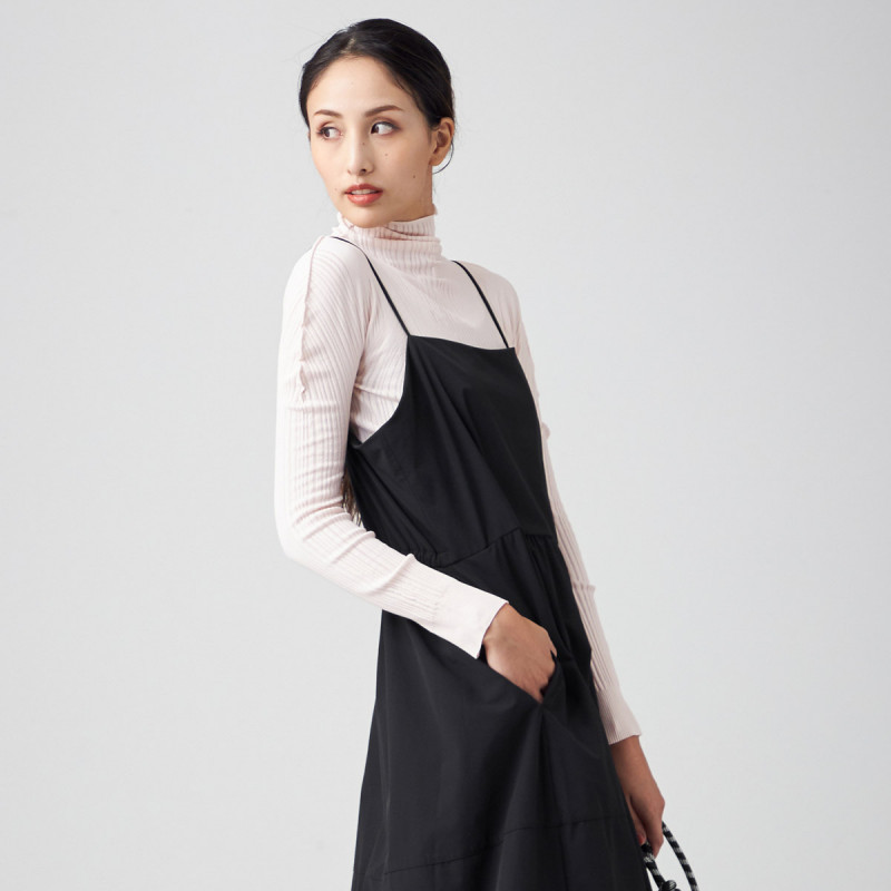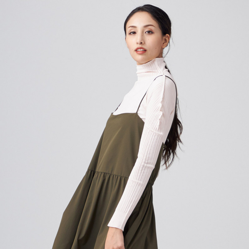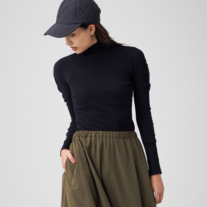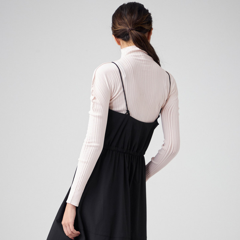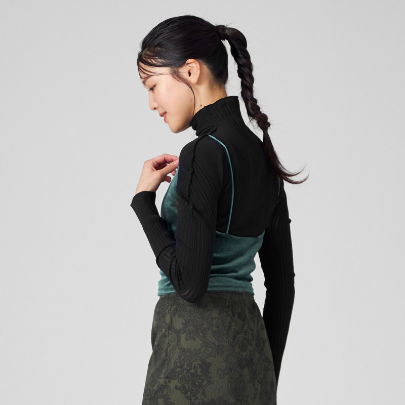 リブの編地をビスチェ風の柄にし、シンプルでちょっと辛めなデザインに。