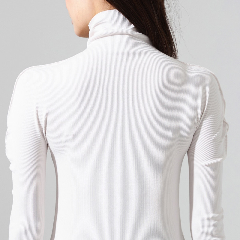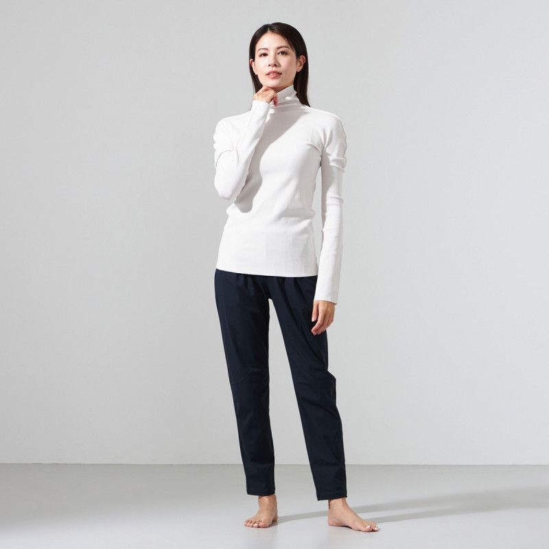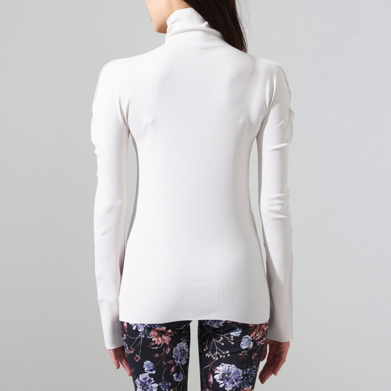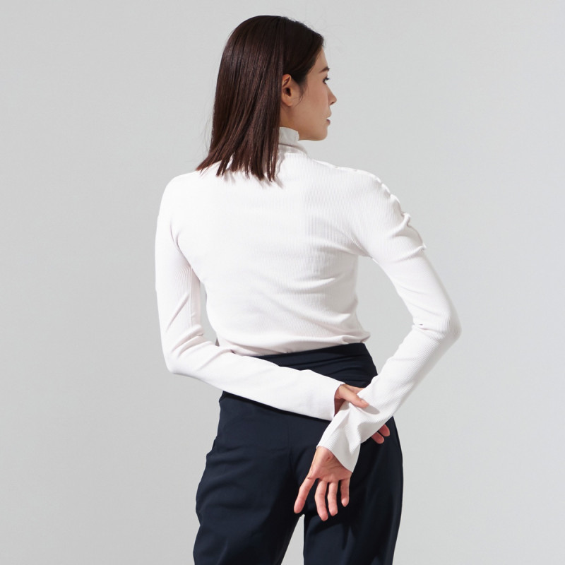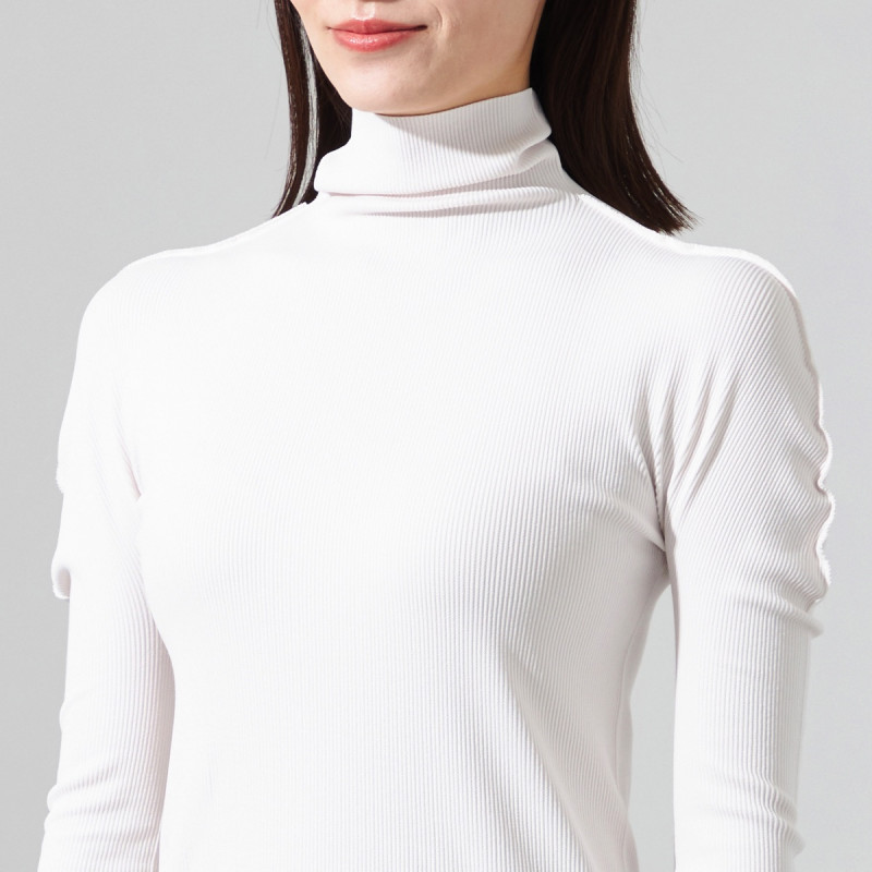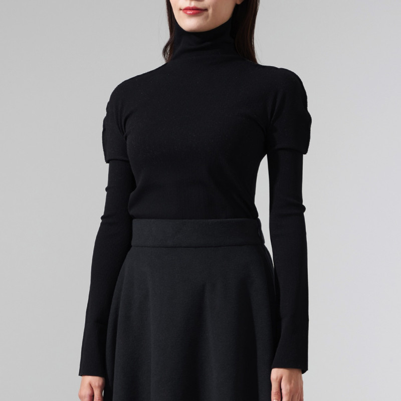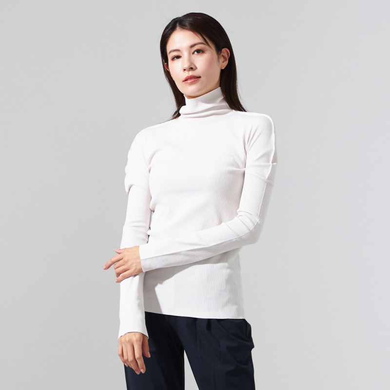 シンプルな柔らかいリブの編地を用いたハイネックのデザイン。
