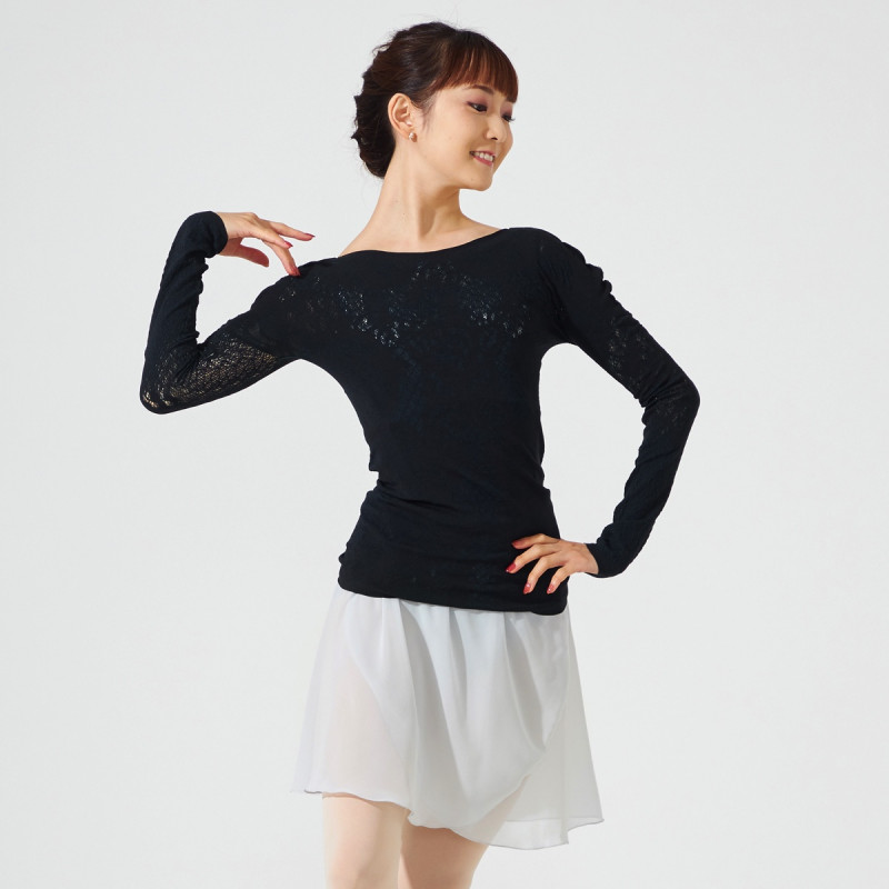 レオタードやブラトップの上に着用してパンツ、レギンス、スカートなどお手持ちのボトムスとあわせて。