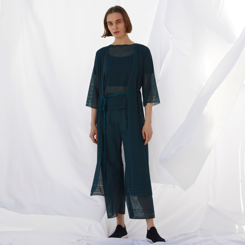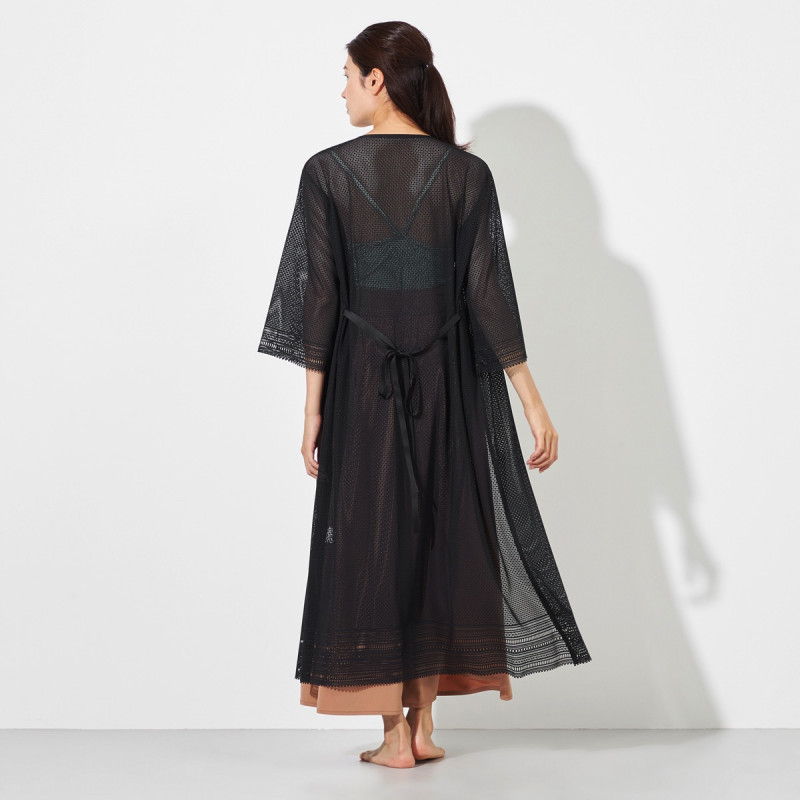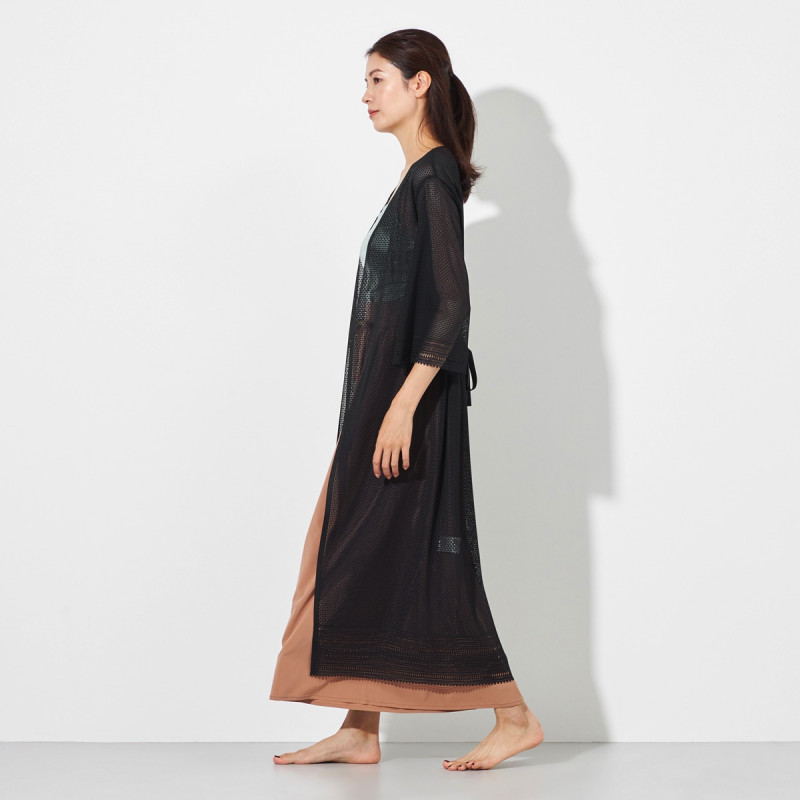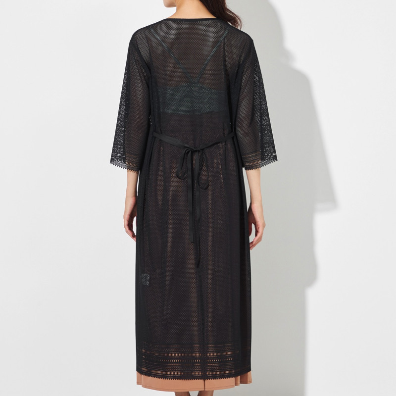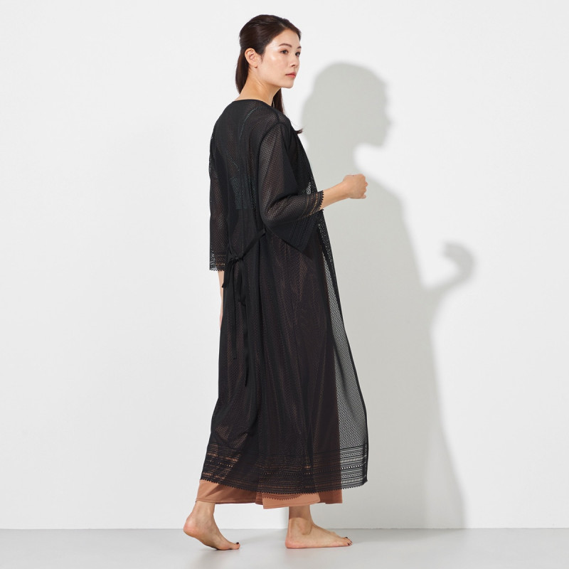 縫い目の少ないストレスフリーな気心地でノーソーイングの風合いや着心地はそのままにロングカーディガンとしてもワンピースとしても使えるデザイン。
