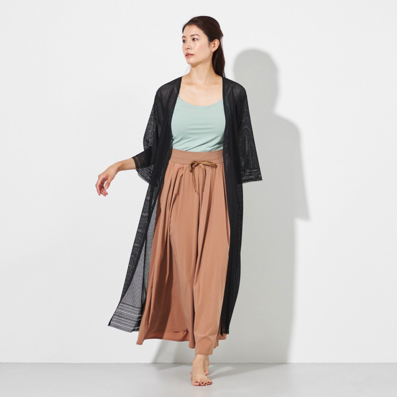 レッスンの行き帰りにワンピースとして、またデニムなどと合わせて前を開けてカーディガンとして羽織って頂いたりとスタイリングの幅が広がるアイテム。