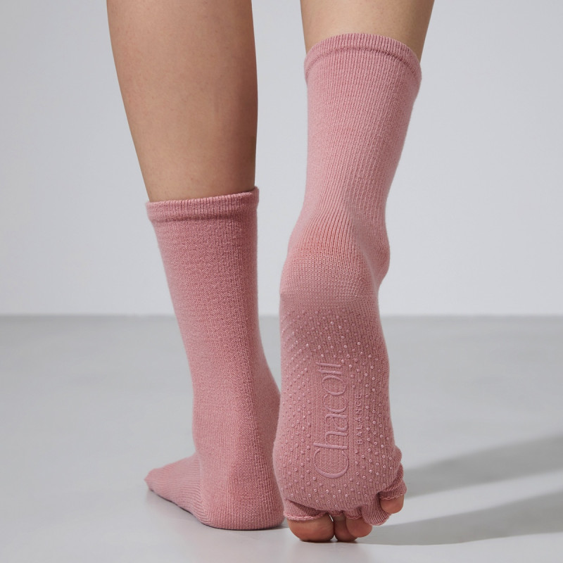 5本指ソックスの指先をカットし、足裏にChacott BALANCEロゴのシリコンプリントを施したグリップソックス。