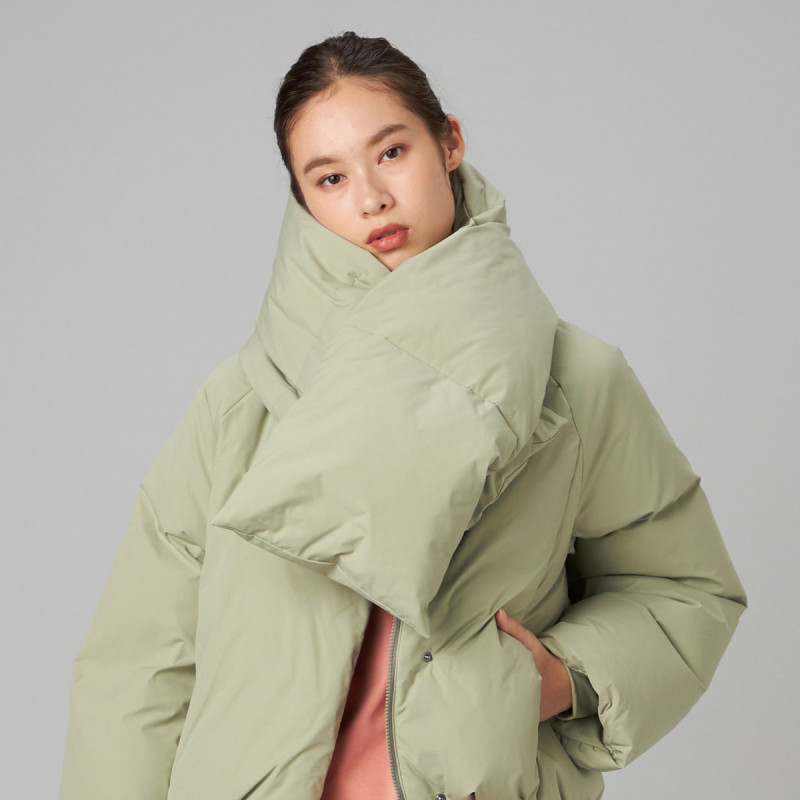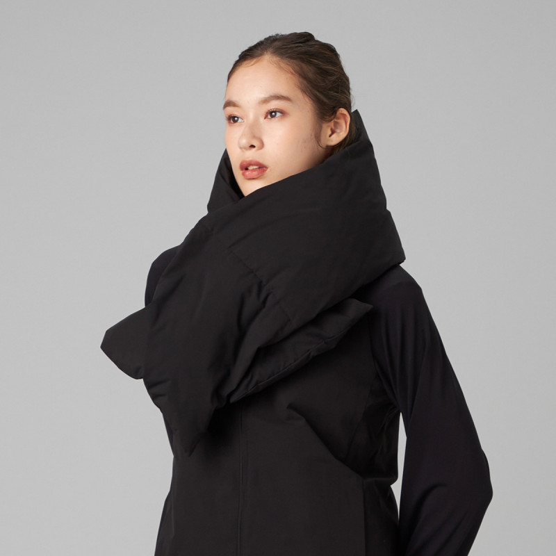 たっぷりとダウンが入っておりボリュームがある見た目に反して、非常に軽量なマフラー。