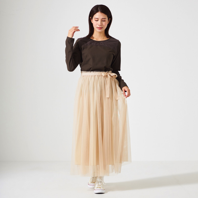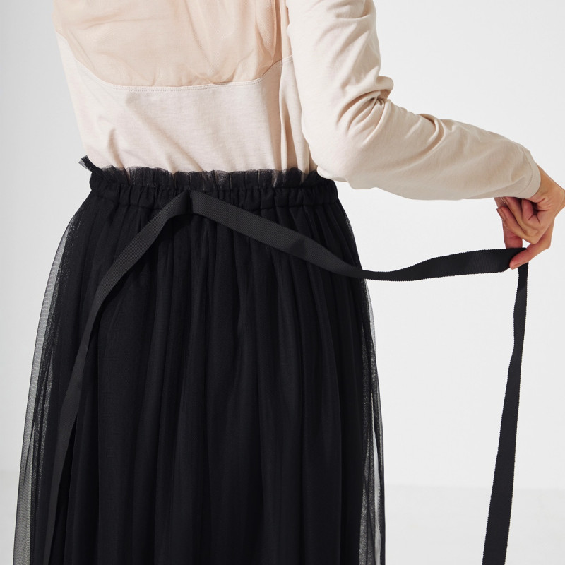 いつものチュールスカートをベースに、ウエスト部分をアレンジしネクストアイテム。