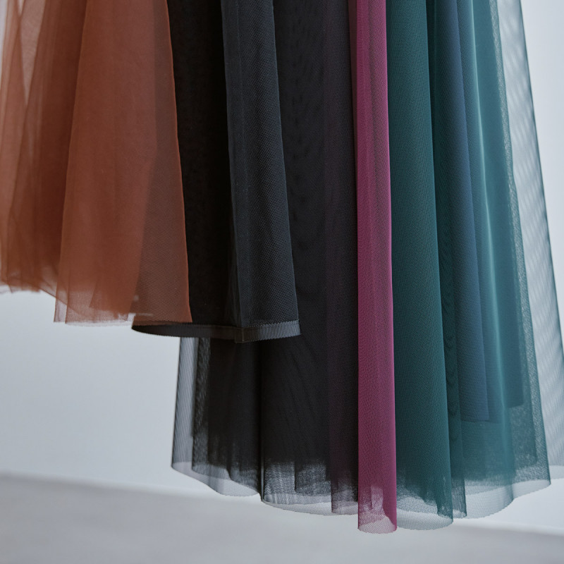 《生地》チュール::上品な透け感と適度なハリ感、ペチコート:肌触りの良い制電ニット裏地