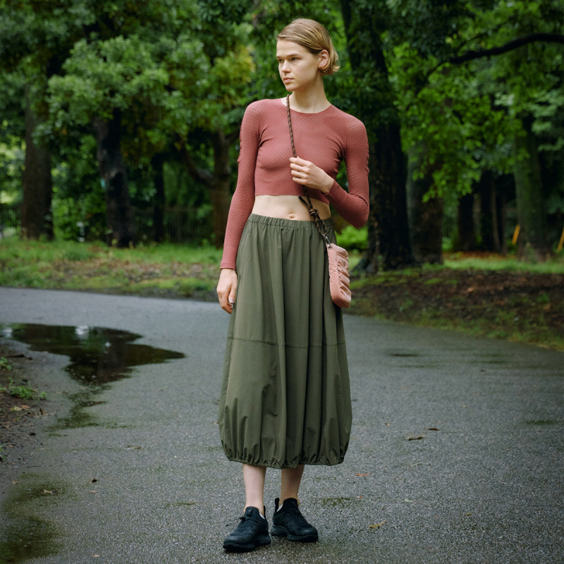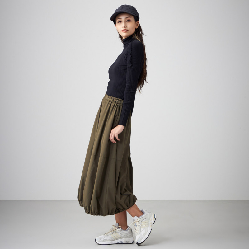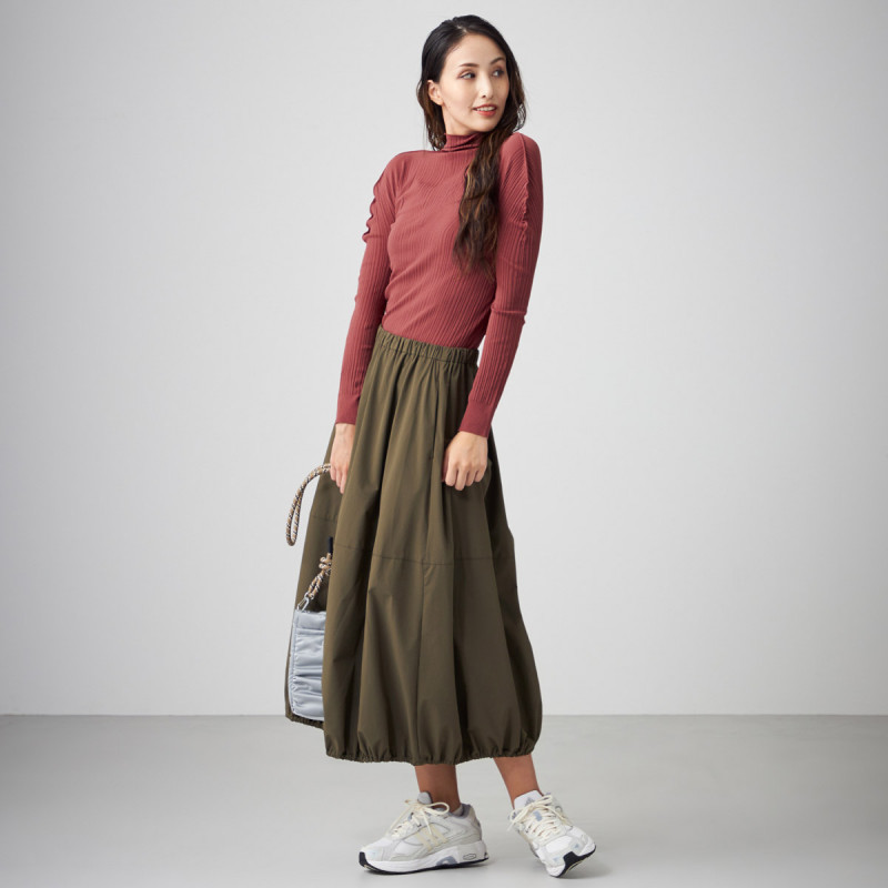 光沢感の少ないマットな質感がこなれた印象で、ノーソーイングやコンパクトなトップとの相性抜群。