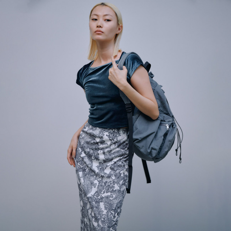 シンプルなシルエットでトップとのバランスがとりやすいアイテムで、オリジナルのプリントがコーディネートのアクセントに。