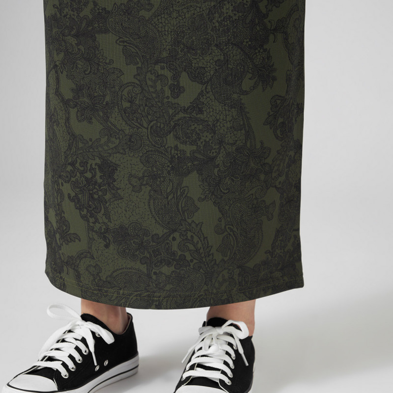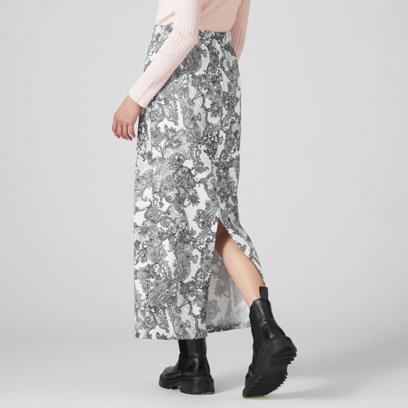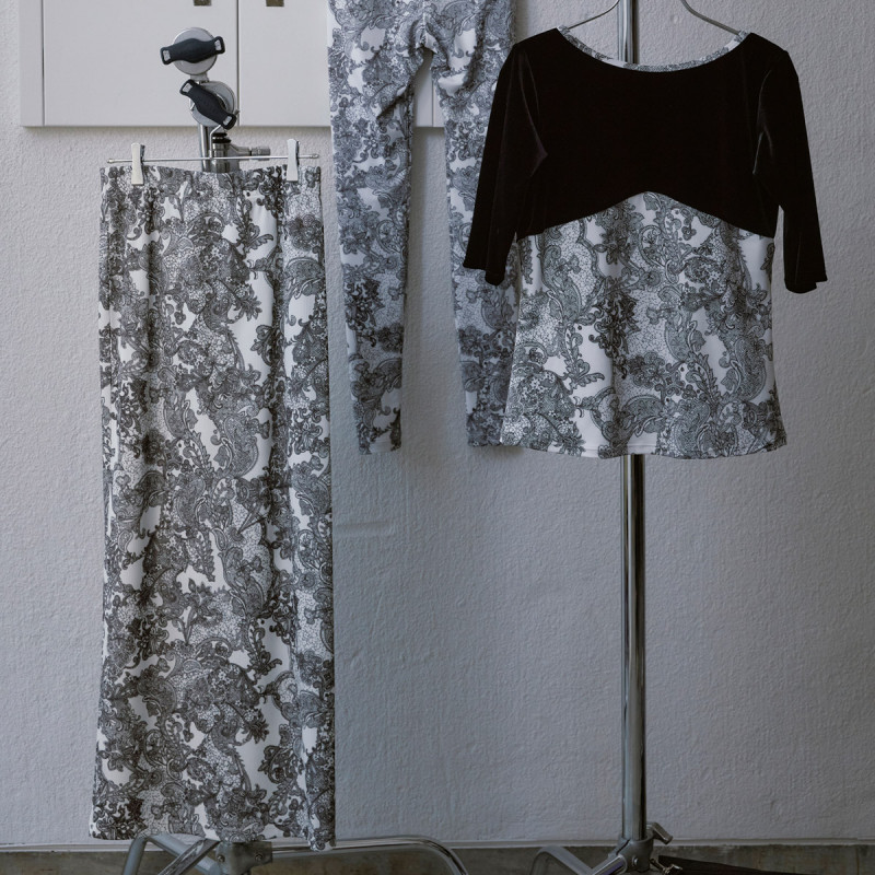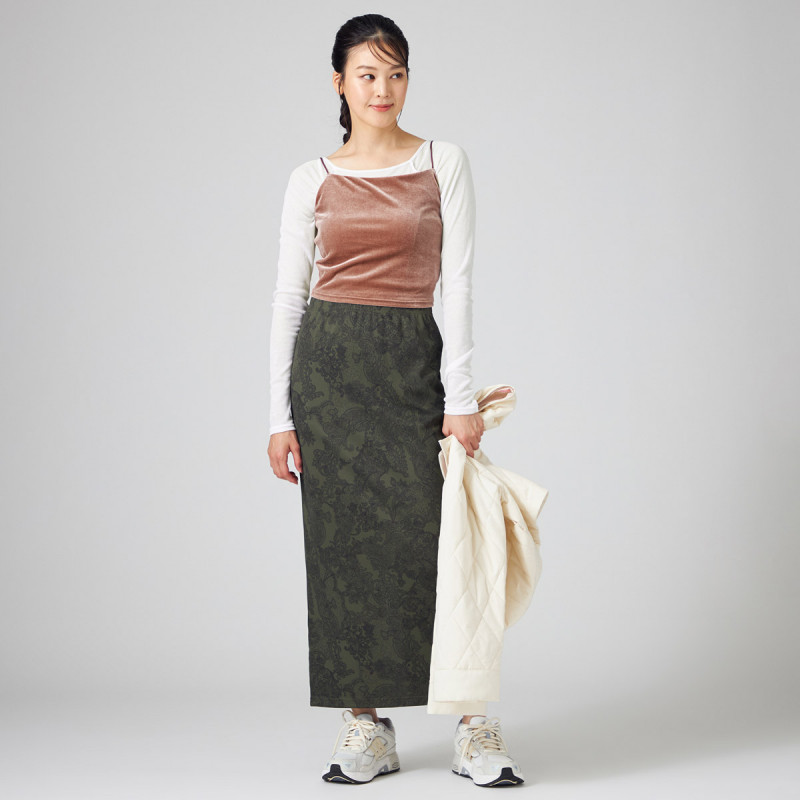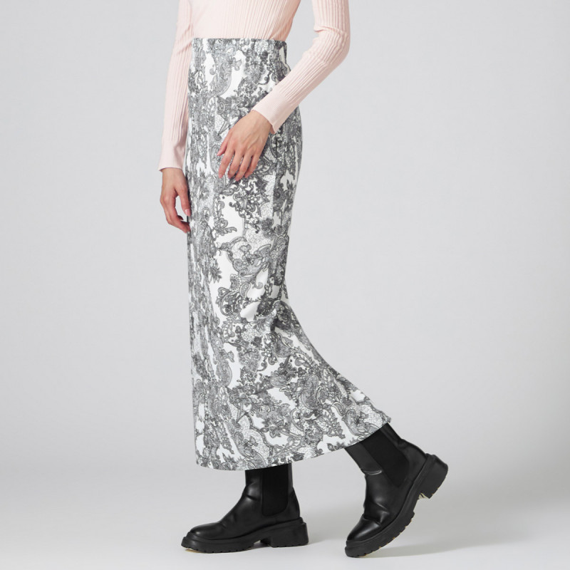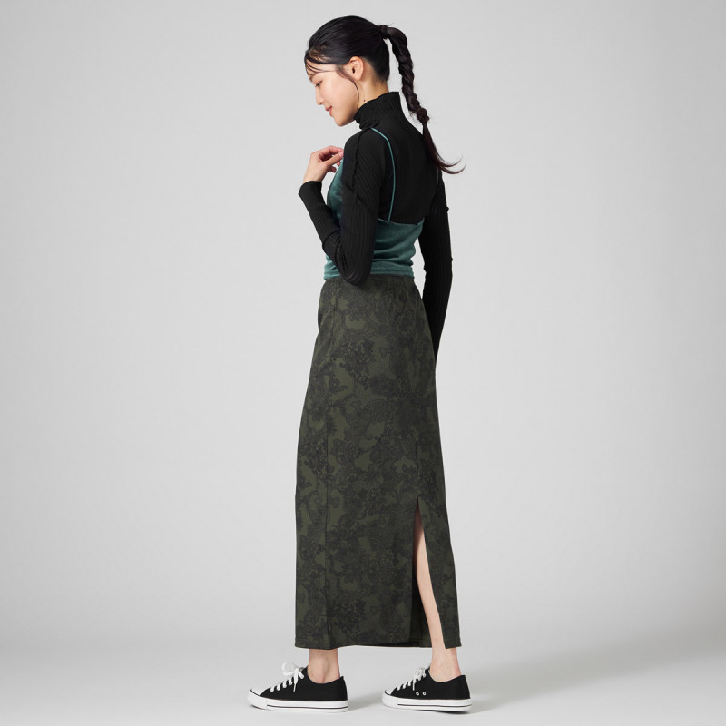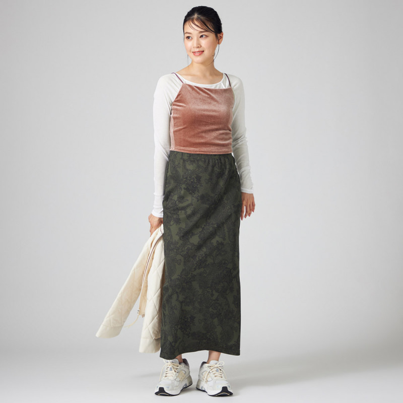 プリントが主役、タイトスカート