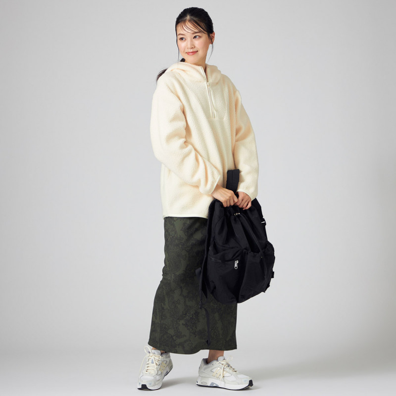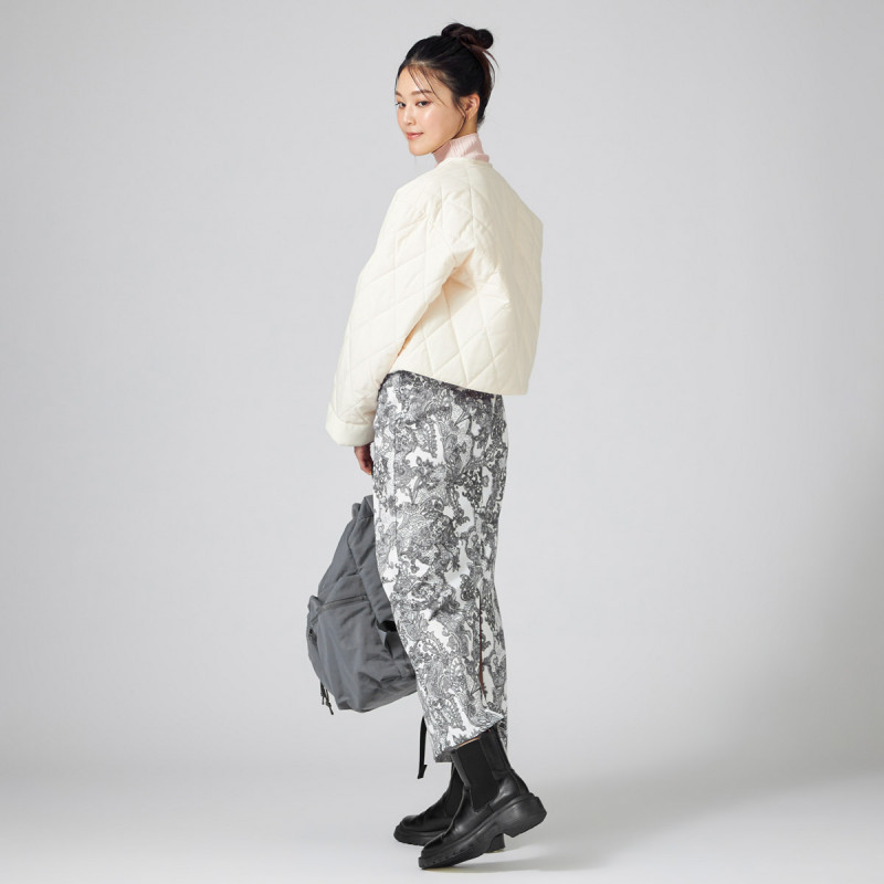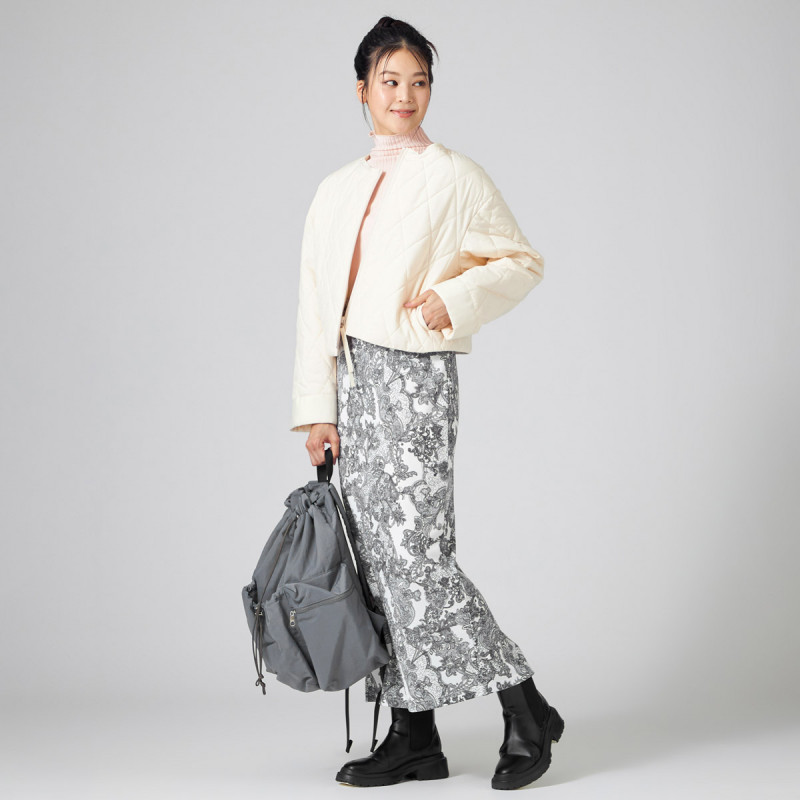 ノーソーイングと合わせたり、スウェットやボアなどのカジュアルなアイテムとの組み合わせもおすすめ。