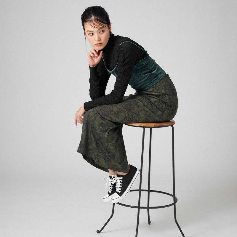 まるでサテン地のような艶やかでフォーマル感のある上品な仕上がりを演出しつつも、豊富な伸縮性で気軽に着まわせるストレッチジャージ。