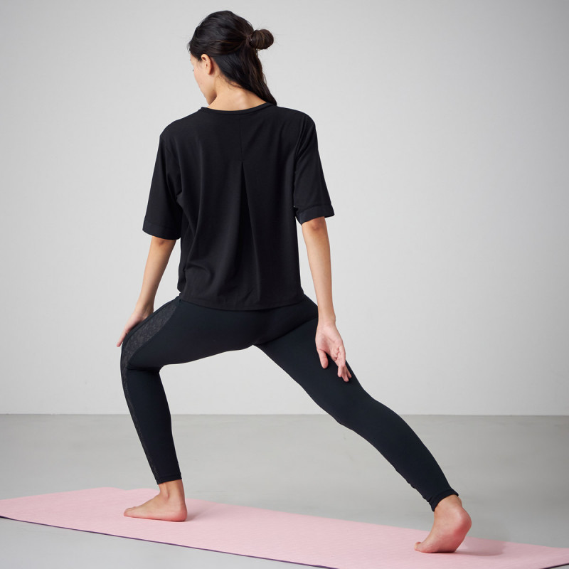 接触冷感と高い消臭性、抗菌防臭性により汗をかくレッスンにも安心な素材。